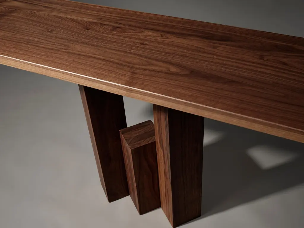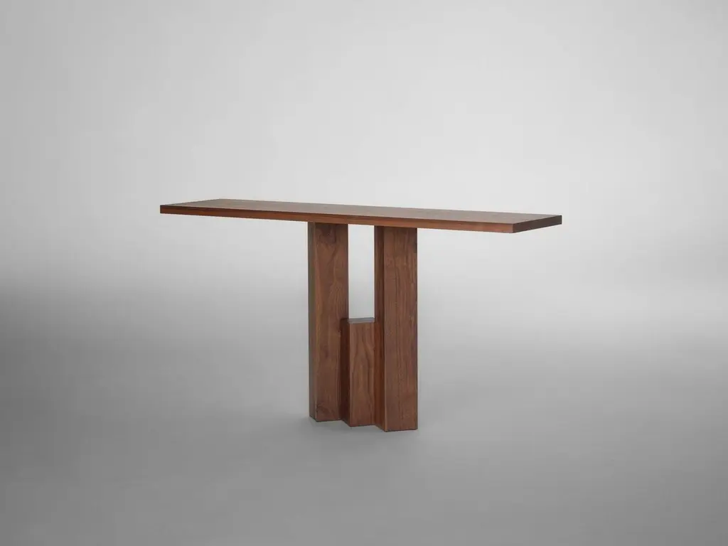 Fenestra 140 Console Table in Warm Brown European Oak by Mokko AmsterdamDimensions: D 35 x W 140 x H 84 cm. Materials: European oak.Available in different material options and dimensions. Designed by Aad Bos and crafted in the Netherlands. Please contact us.Fenestra consoleA rhythmic interplay of volumes and voids. The Fenestra collection is inspired by Brick Expressionism, the architectural movement visible in Amsterdam’s ‘South Plan’ area - the city development plan designed by H.P. Berlage in 1915. Designed by Aad Bos and crafted in the Netherlands out of solid European oak or American walnut. The product is made to order with a production time of 7-8 weeks and customizable in design, size, material and color. We welcome you to our studio to get a feel for the quality and presence of our objects.Mokko represents a collection of interior objects designed by founder Aad Bos. The Amsterdam-based studio was established in 2017 and creates custom products for interior professionals and design enthusiasts internationally.Objects by Mokko feature a rhythm of monolithic form, created through an iteration of volumes and voids. Architectural elements are balanced, weighed and stripped from excess, until the essence of the inspiration is translated into a sculptural object that is emotionally resonant.With respect for nature and robust furniture building, each piece is made in close collaboration with local carpenters in the Netherlands from high-quality, sustainable materials. All objects are custom-made and conceived as future heirlooms; intended to be valued, used and passed down through generations.