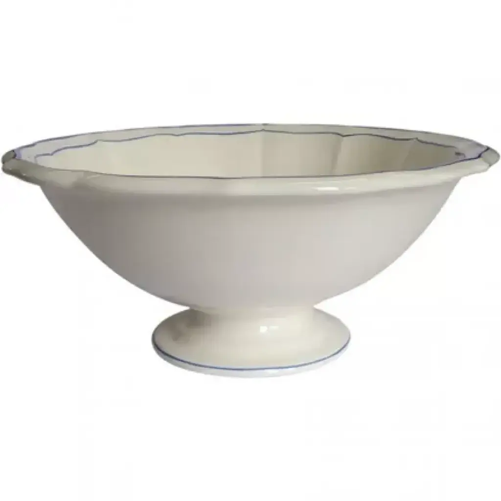 Timeless tableware, sleek and elegant, enhanced by hand-painted banding and the classic scalloped edge. Located near the Loire Valley castles, the Faïencerie de Gien has been synonymous with prestigious faience tableware and decorative objects since its founding in 1821. Gien pieces are renowned for their warm white clays decorated with traditional motifs reminiscent of the French countryside.
