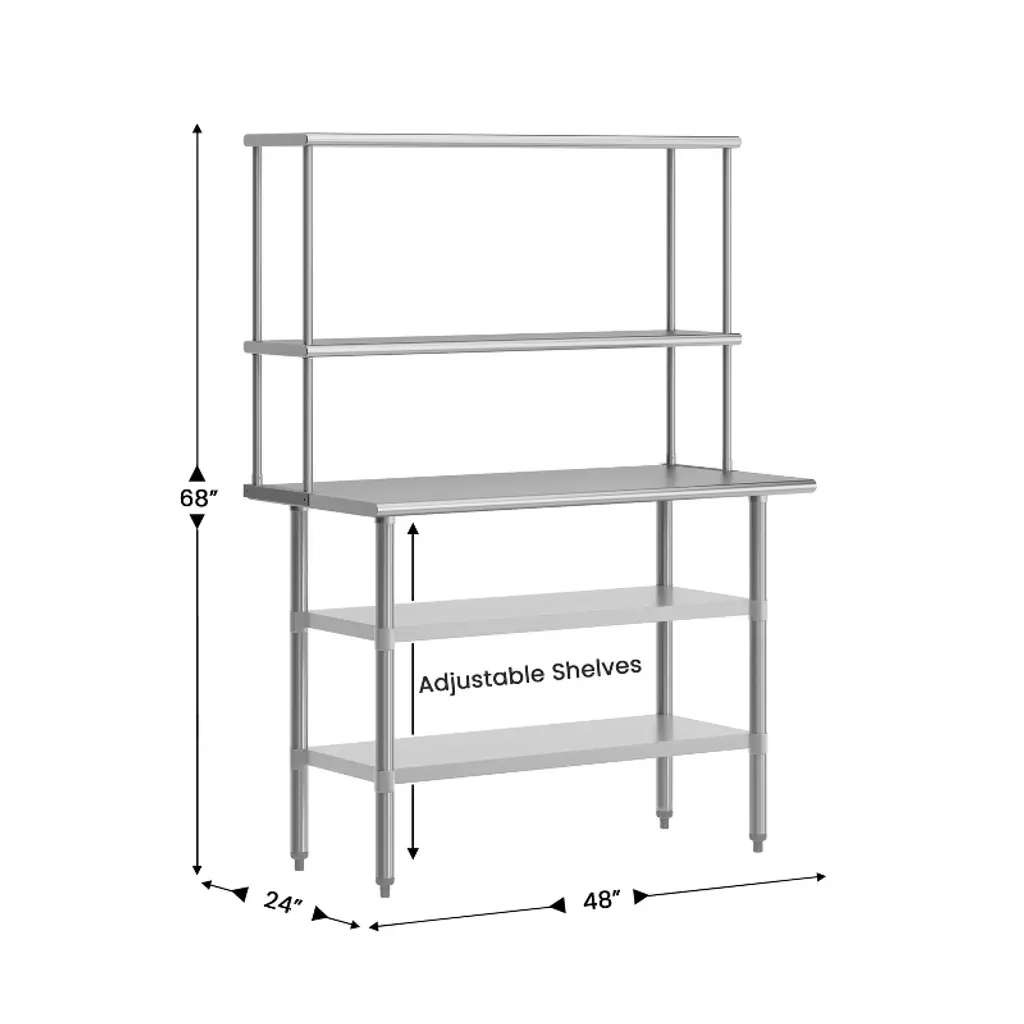 Flash Furniture Commercial Stainless Steel Work Table With 2 Overshelves And Undershelves-24x48