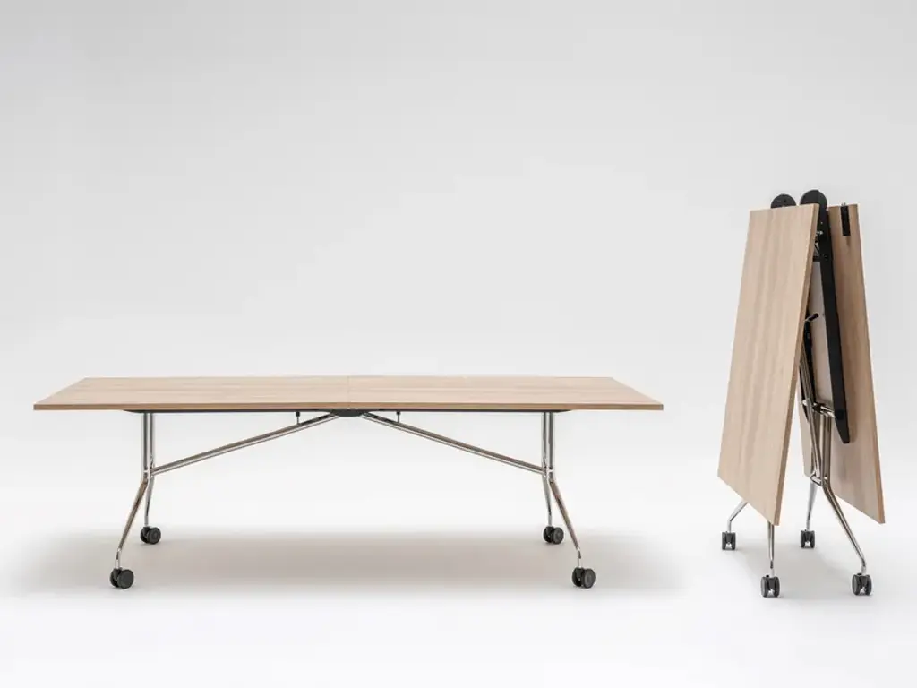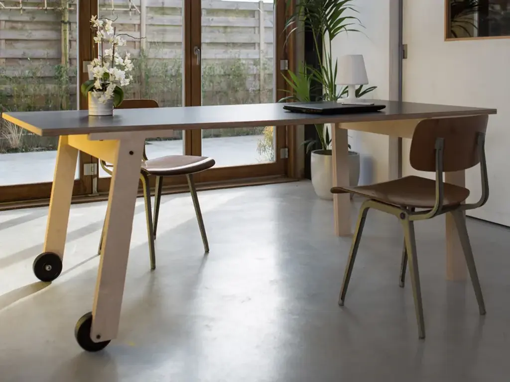 Sustainably produced and hand-finished in Belgium, the rform Flat Table on wheels brings a sense of flow to every home for family-friendly living with high-design sensibilities.The table top and legs are made from very sturdy birch plywood. For the legs' top layer you can then either select a birch or oak wood veneer or you can add a splash of colour into the equation by opting for a high pressure laminate layer that comes in many colours to select from. The wheels come in white or black colour.Two year warranty. Suitable for interior use only. Requires assembly, instructions and fixtures included. Natural wood surfaces treated with oil finish. This finish seals the pores of the wood, enhancing its natural structure and forming a water repellent protection against everyday wear and tear. Well protected against water, juices, wine, milk,... Just clean it with a wet towel.MATERIALtop: birch plywood with white HPLlegs: birch plywood with wood veneer (birch or oak) or birch plywood with HPLwheels color: white, blackDelivered well protected in a cardboard flatpack and eco-friendly cushioning materials.