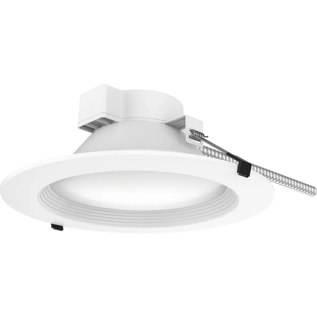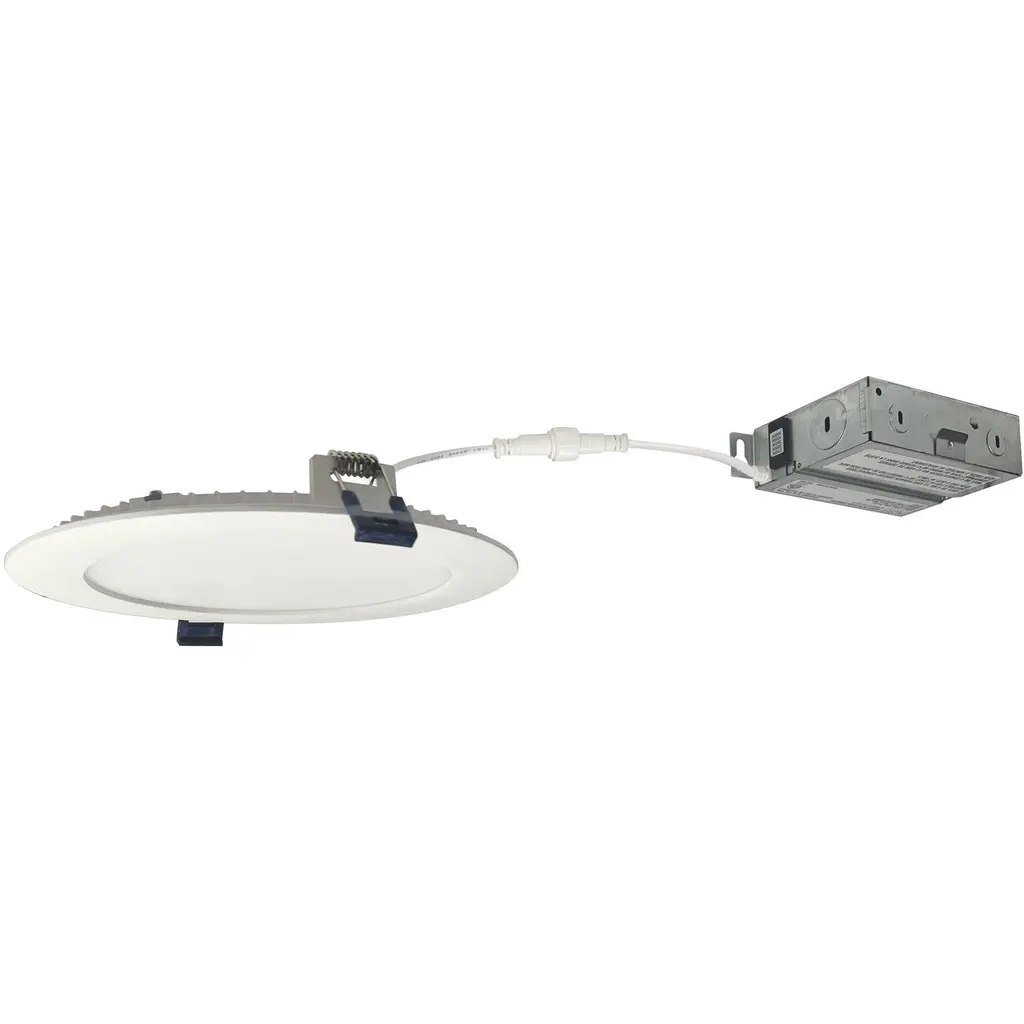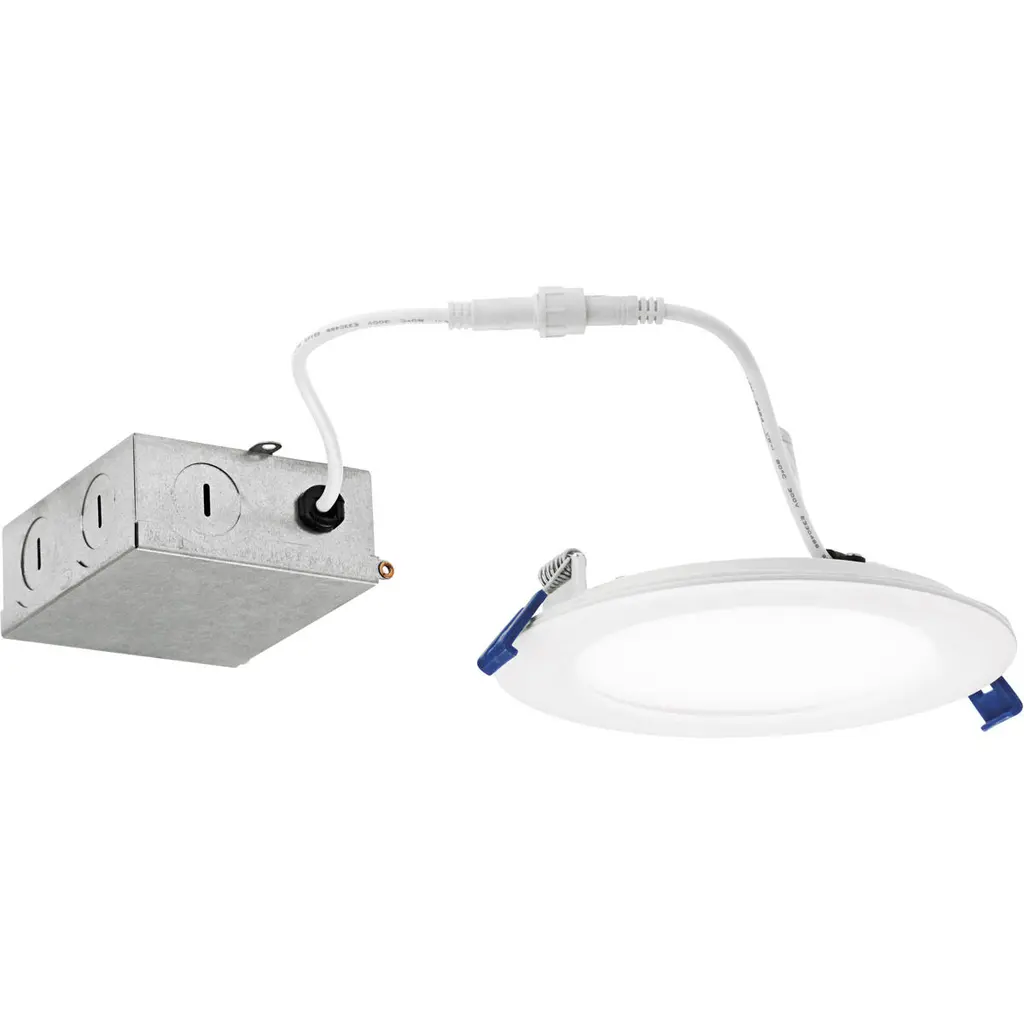6" FLIN adjustable can-less LED downlights feature two-axis rotation with 25 tilt and 180 rotation. Can-less downlights are easy to install in new construction or remodel applications. Luminaires include a selectable color temperature switch located on the junction box of each luminaire with a quick connect that allows for easy disconnect and mounting in the ceiling. . Adjustment 25 tilt / 180 rotation . Input Voltage 120V . Lumens / Wattage 1100lm / 13.5W . Color Temperature Selectable CCT (27K/30K/35K/40K/50K) . Color Rendering Index 90+ CRI . Dimming Triac or ELV . Finish Matte Powder White . Listing cETLus Listed for Wet Locations.