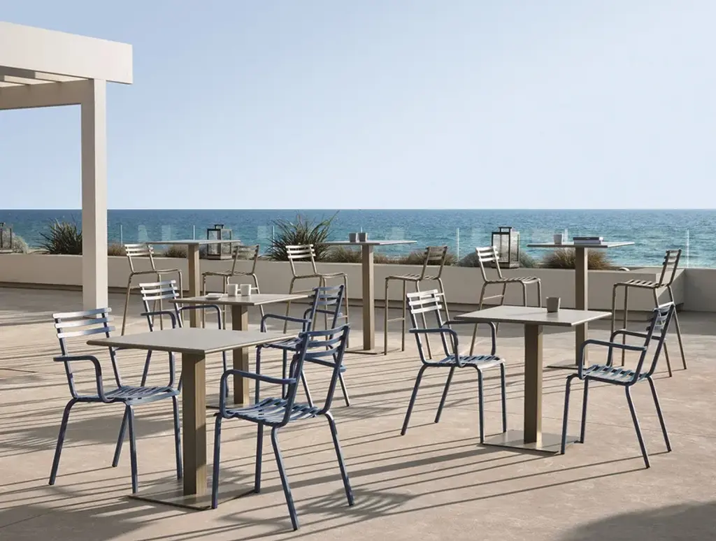 FLOWER is a square fixed table 80x80cm in coloured metal, in a choice of in colours.A design concept which has become a true icon of Ethimo production and open–air living in general. FLOWER, a complete collection of metal furniture which combines lightweight shapes with a wide range of colours.