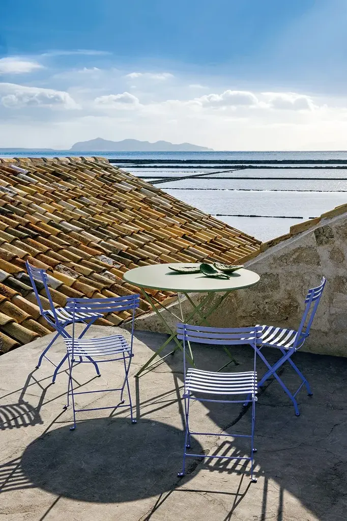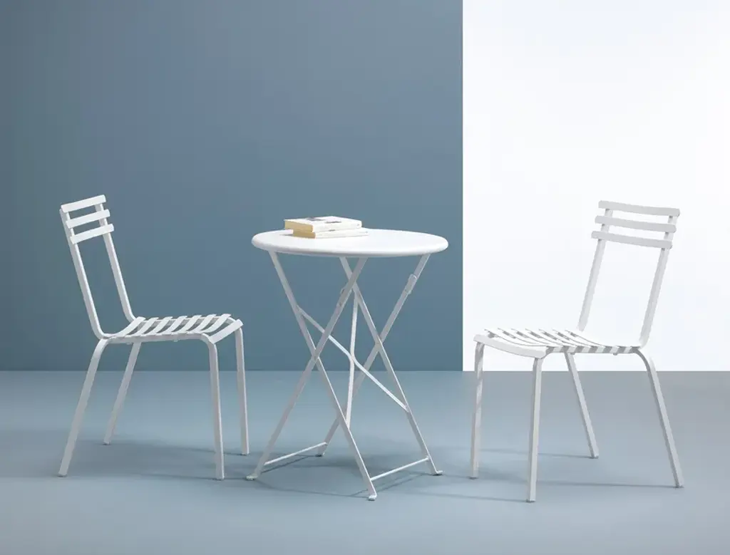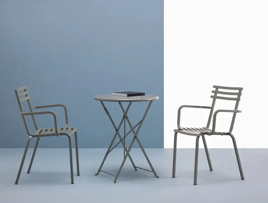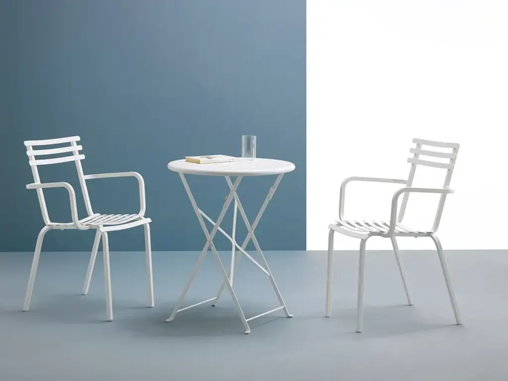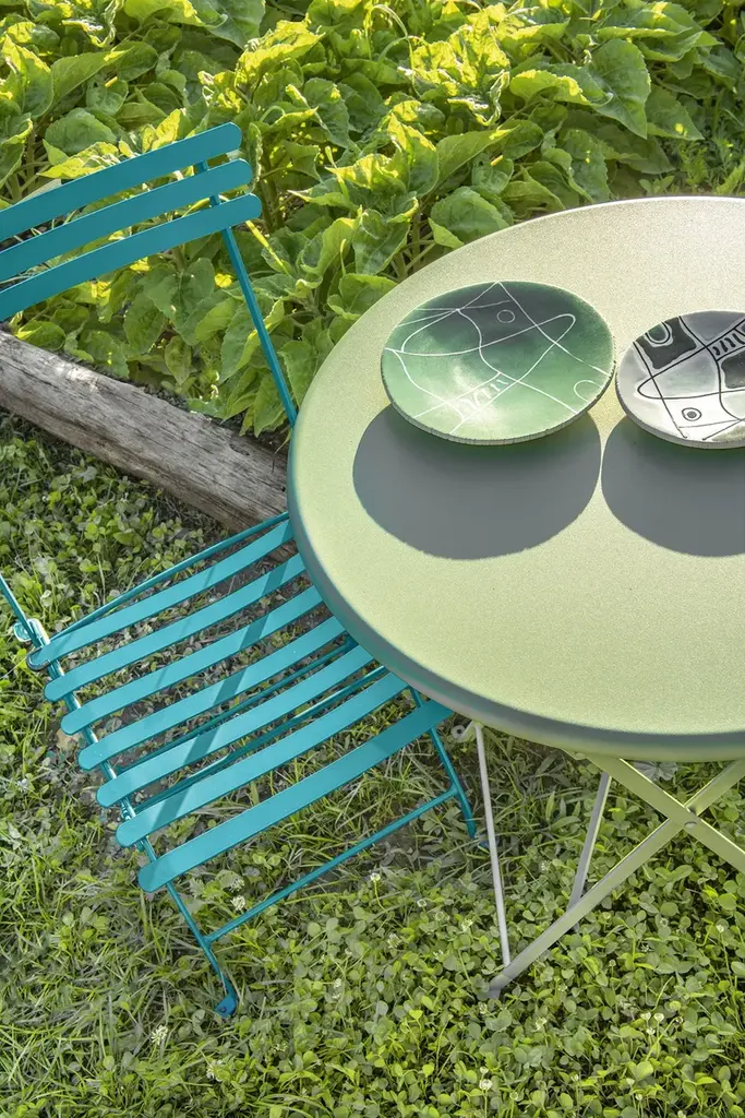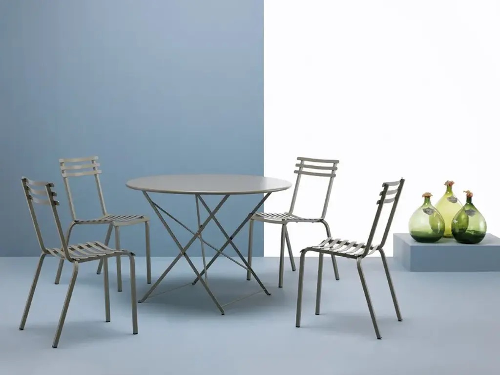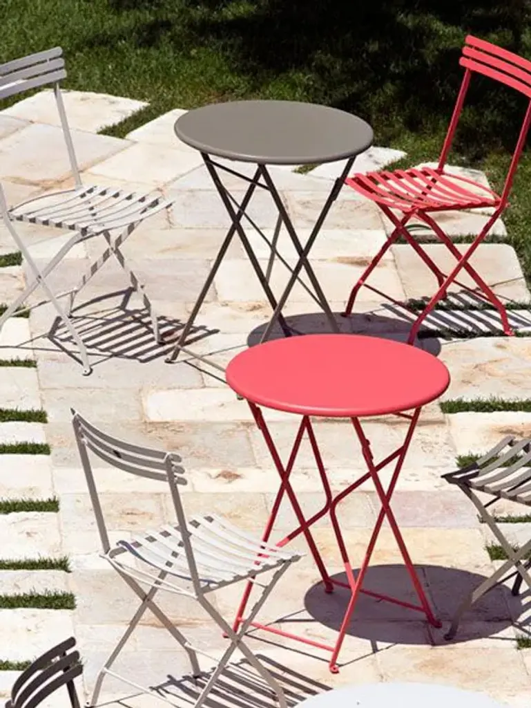 FLOWER | Round table is a folding garden table in metal available in 12 colors.A design concept which has become a true icon of Ethimo production and open–air living in general. FLOWER, a complete collection of metal furniture which combines lightweight shapes with a wide range of colours.
