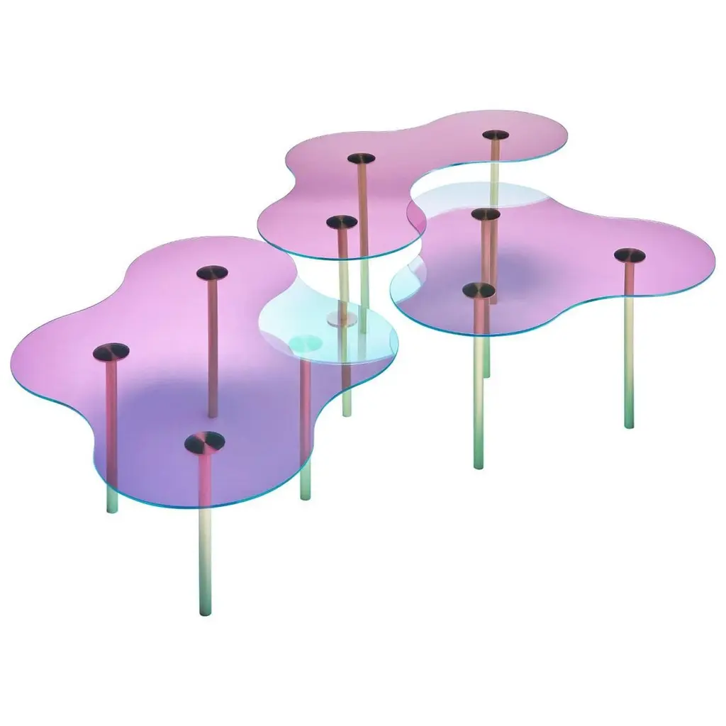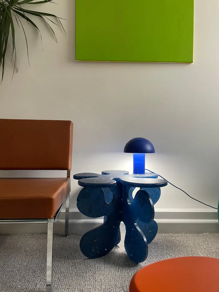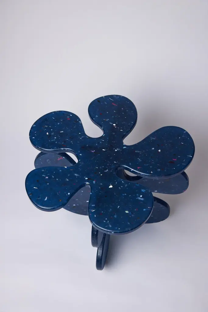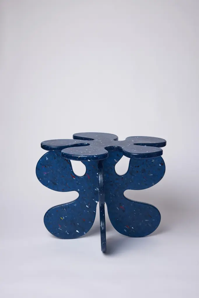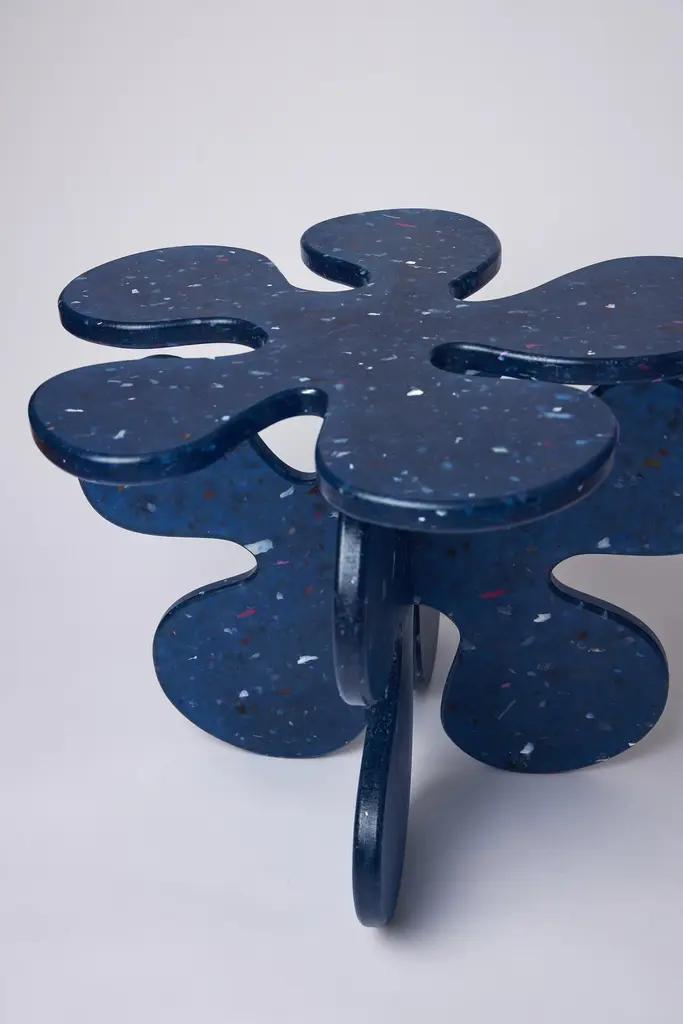 squares & things' signature Flower Table design gets reimagined in 100% recycled plastics. Made entirely from recycled plastic packaging and ocean waste, the table can be recycled itself, becoming part of the circular economy. Pictured is the table in 'Ocean' by Smile Plastics This incredible Material also allows the table to be suitable for outdoor use as well indoor. Finished with a UV protective sealant.Featuring a flat pack design for easy assembly, this piece arrives in three separate parts (1 package) with an assembly video.Lead time 6 weeks.Produced by Make Relief studio in Brighton, U.K.