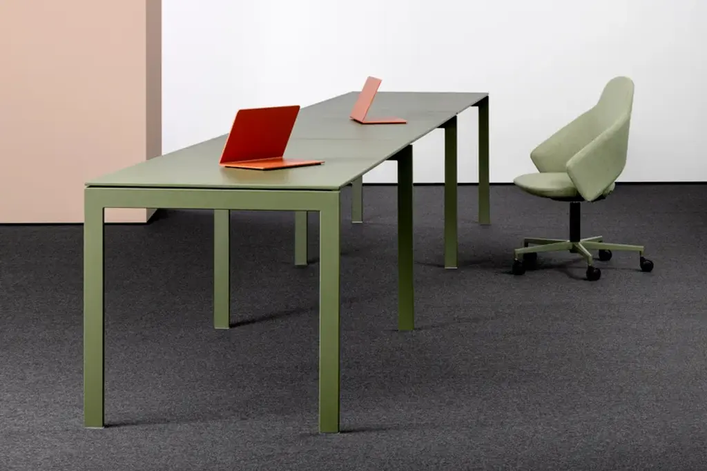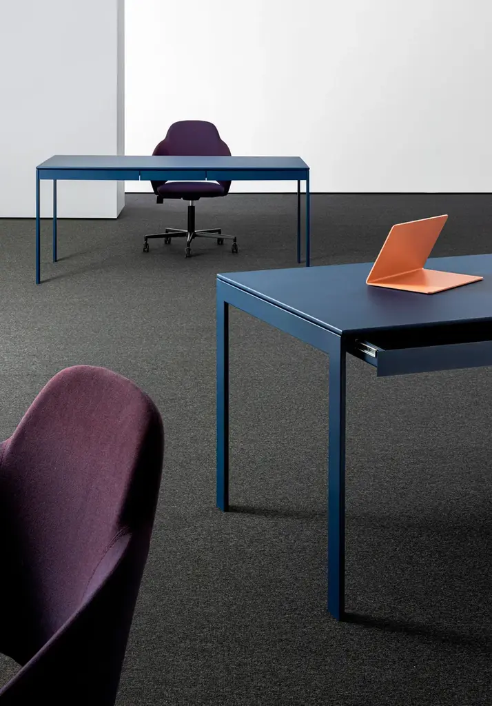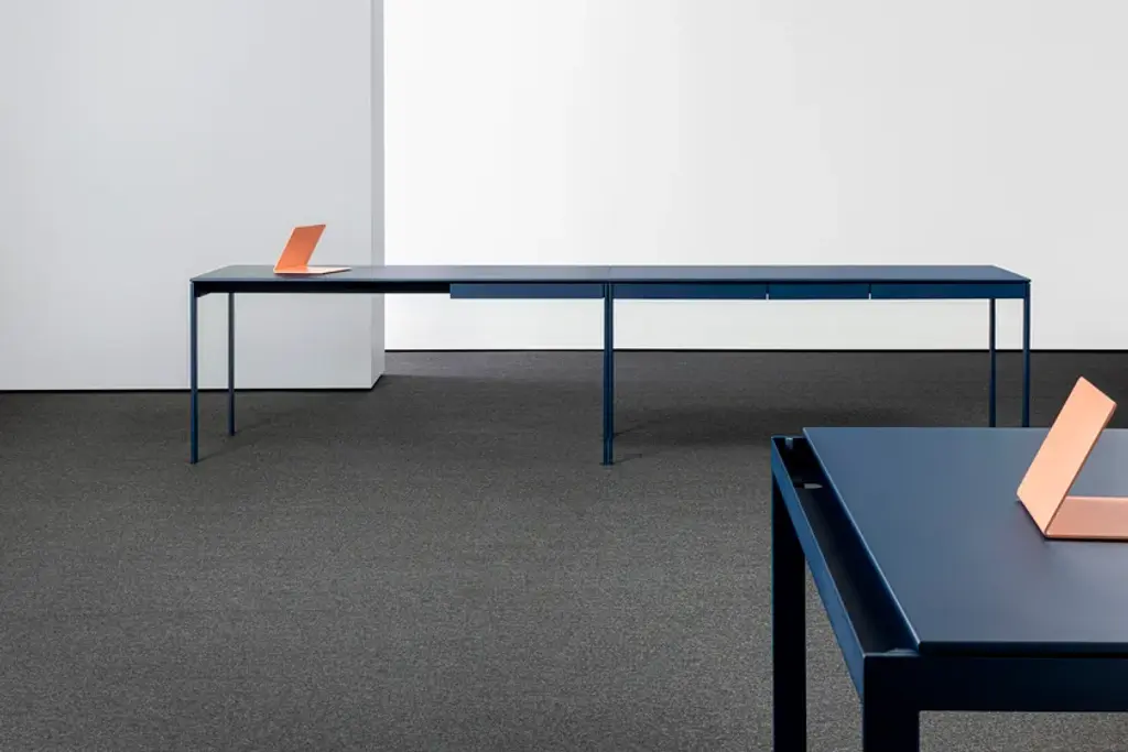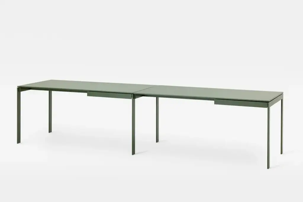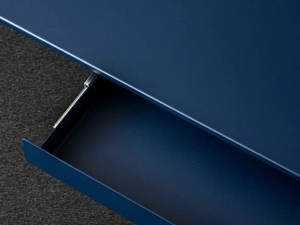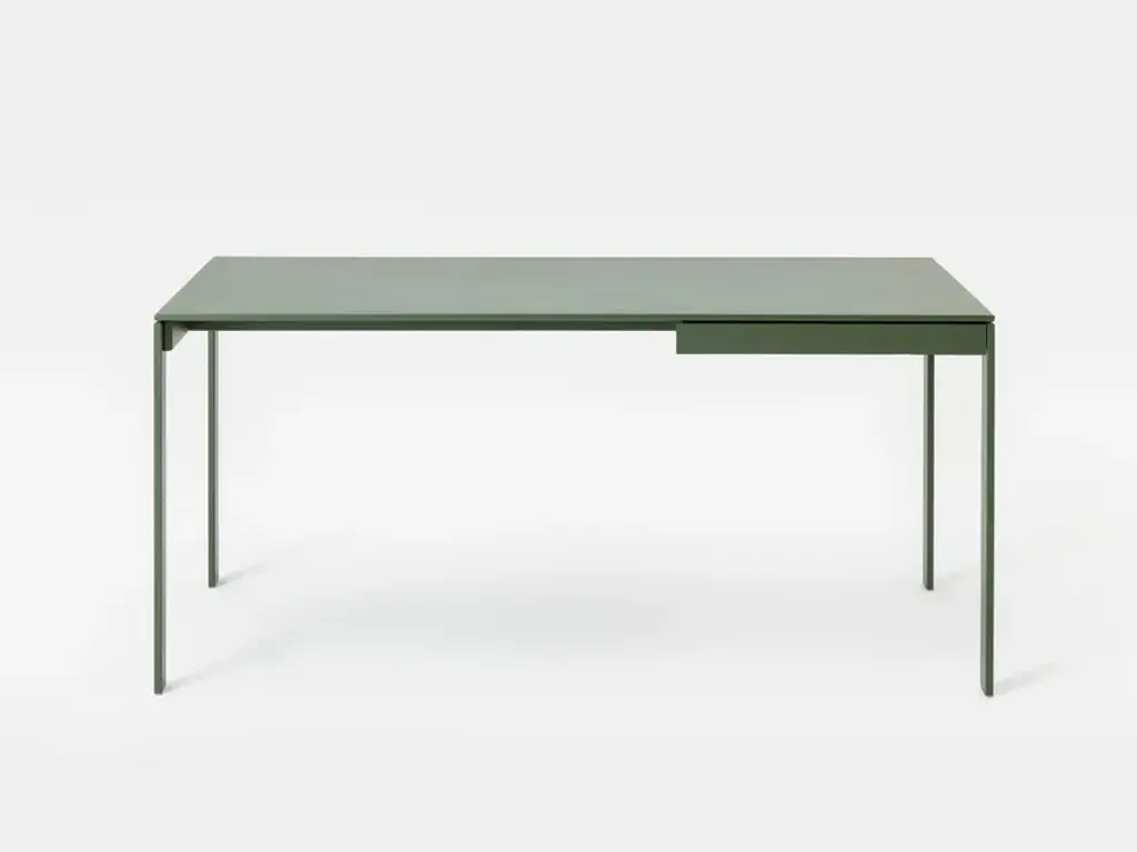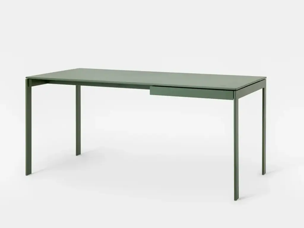 Foil table appears as "a top with four legs", all in metal. There is no complexityon sight, no articulated structure, no overexposure in form or technique: just a flat surface bordered by a minimal frame and supported by four ultra-thin legs. "A line, therefore, a sign imprinted in the air", according to its author's vision.This is as much the case in the fixed version as it is in the model with a top integrated with Mara mechanisms that allow the top itself to easily move and reveal the storage space underneath. The frame, in fact, is not only an aesthetic detail, it serves to conceal the mechanical system, as well as any accessories that Foil may be equipped with, like the practical drawers.