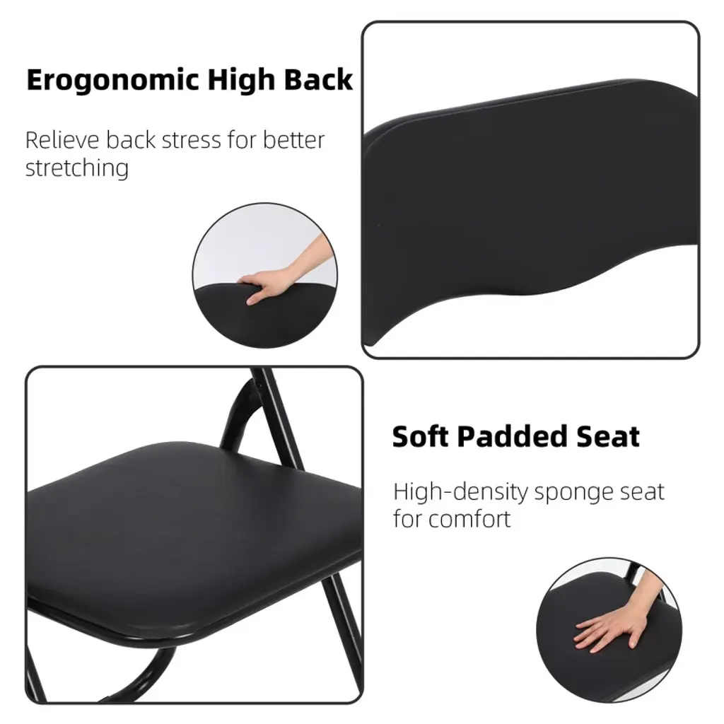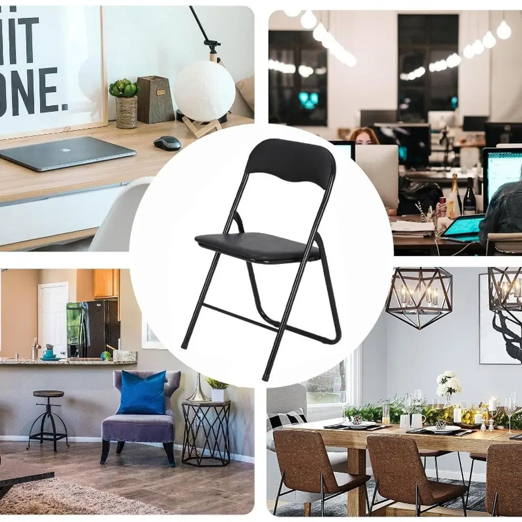Introducing our Folding Chairs 4 Pack with Cushion, designed to bring comfort, convenience, and style to your indoor and outdoor events. These versatile chairs feature a simple foldable design that allows you to easily fold them flat for efficient storage and quick setup, perfect for students, adults, and seniors without any complicated assembly. Crafted with a sturdy steel frame and reinforced triangular design, each chair supports up to 280lbs, ensuring durability and reliability for all your seating needs. The premium PU leather upholstered seat and backrest provide a comfortable and elegant seating experience, making these chairs ideal for weddings, dinners, birthdays, potlucks, or any special gathering. Equipped with stable non-slip foot pads, these chairs offer enhanced stability while protecting your floors from scratches and damage, suitable for both indoor and outdoor use. Their stackable design allows for easy organization and space-saving storage. Whether you need extra seating for work, study, or social events, our Folding Chairs with Cushion are the perfect blend of functionality, comfort, and stylish design to meet all your seating requirements.
