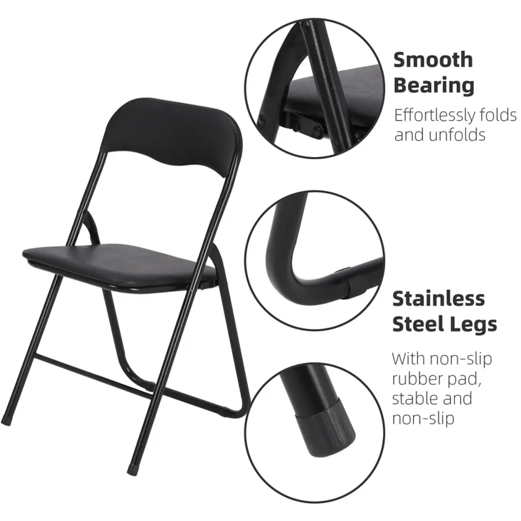 Folding Chairs 4 Pack With Cushion - Portable Metal Chairs With Non-slip Feet Pads, Stackable Chairs For Outdoor & Indoor Event.black