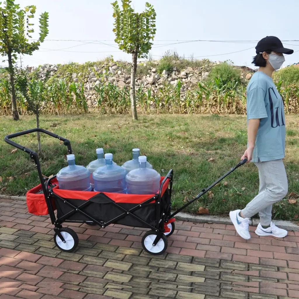 Folding Wagon Collapsible Outdoor Utility Wagon, Heavy Duty Folding Garden Portable Hand Cart Black+red