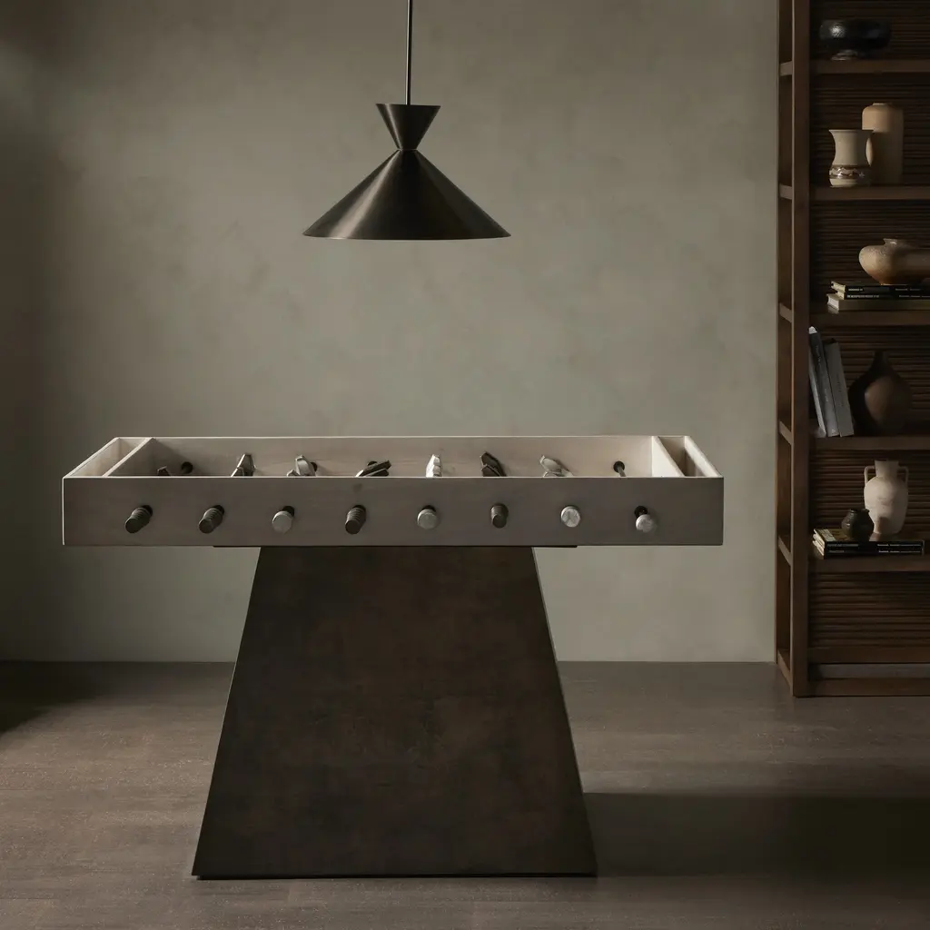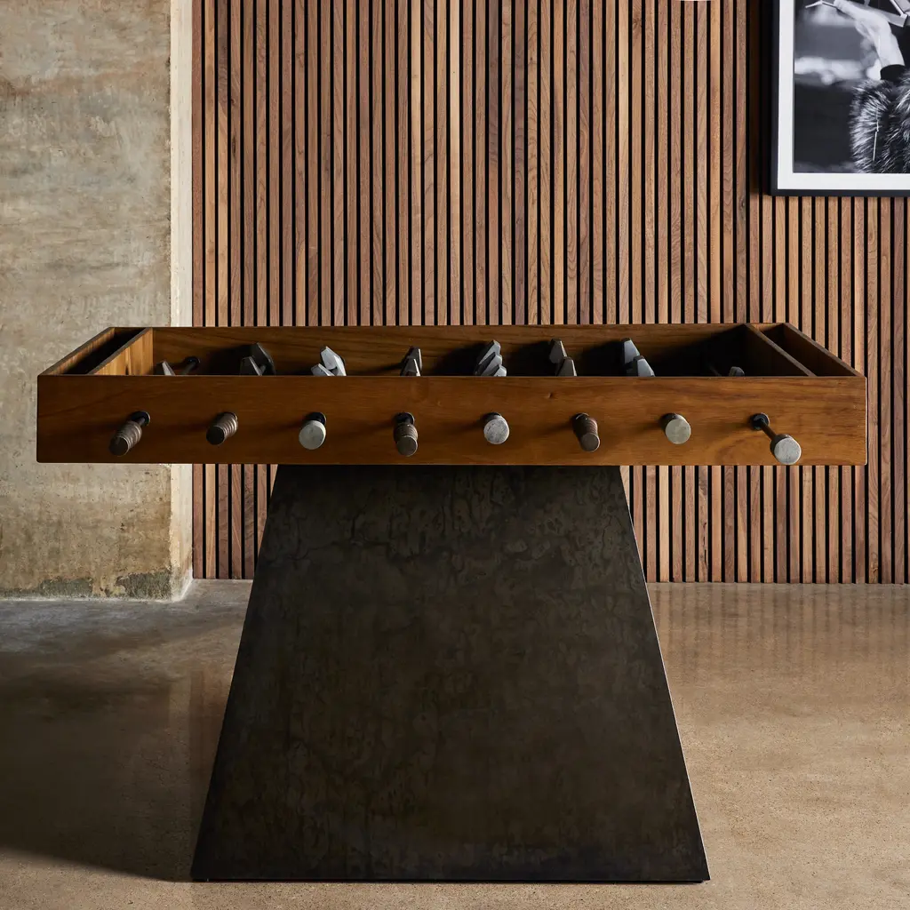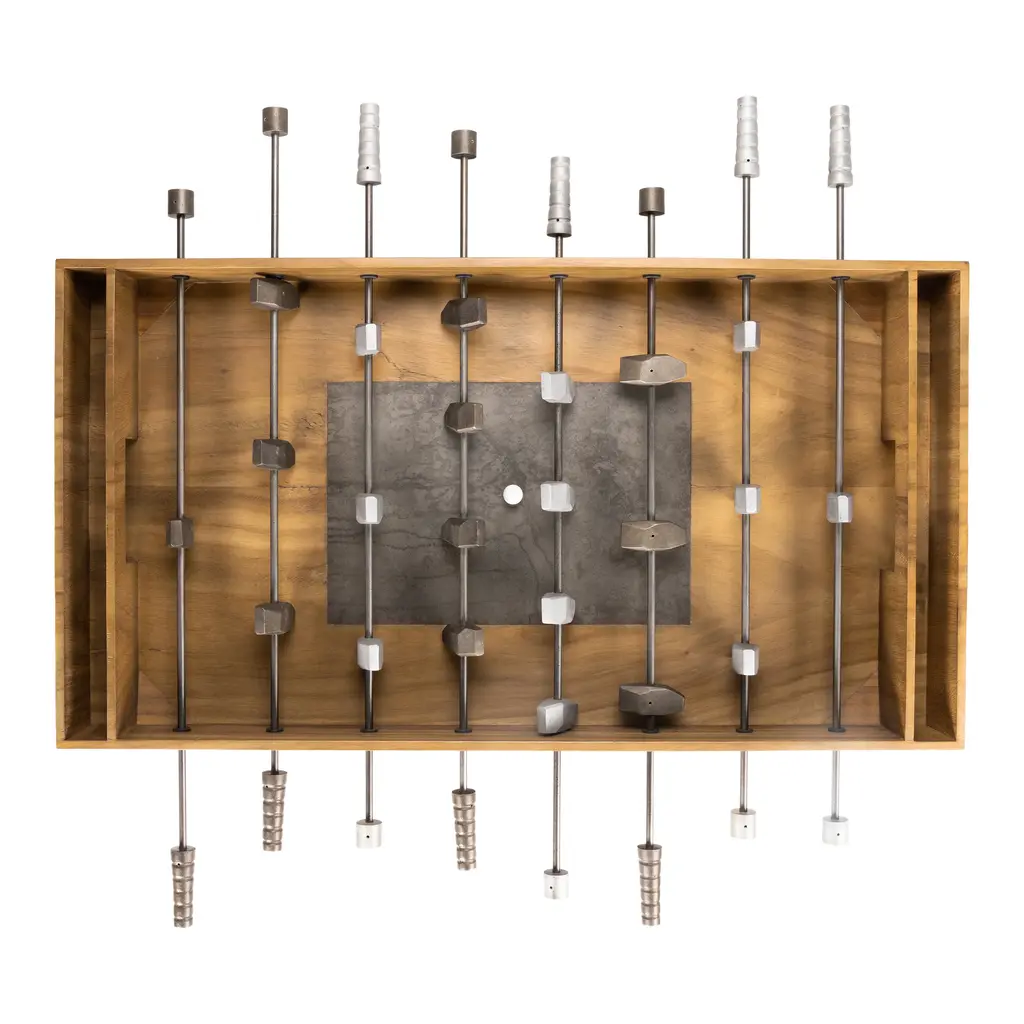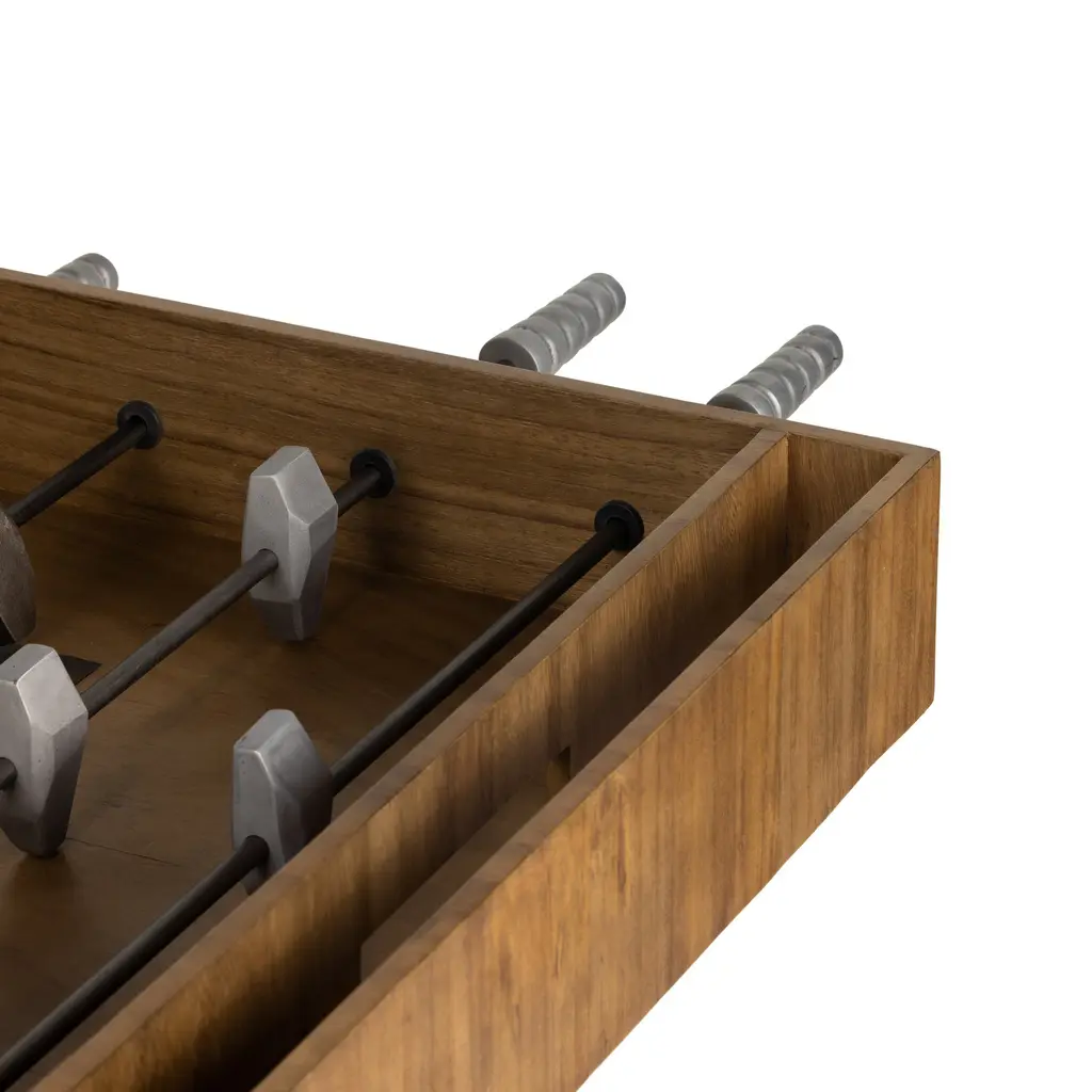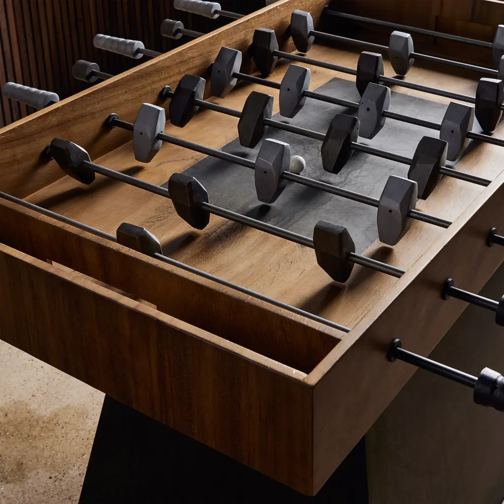 Designed to add a classic and competitive game to any home, while simultaneously providing an elegant aesthetic, the Foosball Table from Four Hands is game time elevated. Built using a blend of wood and metal, the metal base creates a grand silhouette that tapers perfectly, drawing the eye to the game. Surrounded by a wood encasing, the playing field features minimal decoration to showcase its beautiful wood grain. Highlights