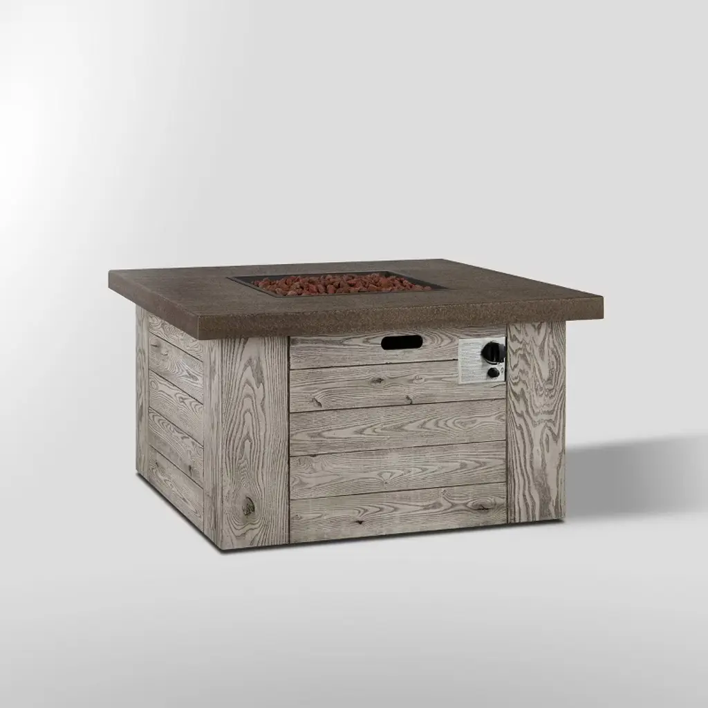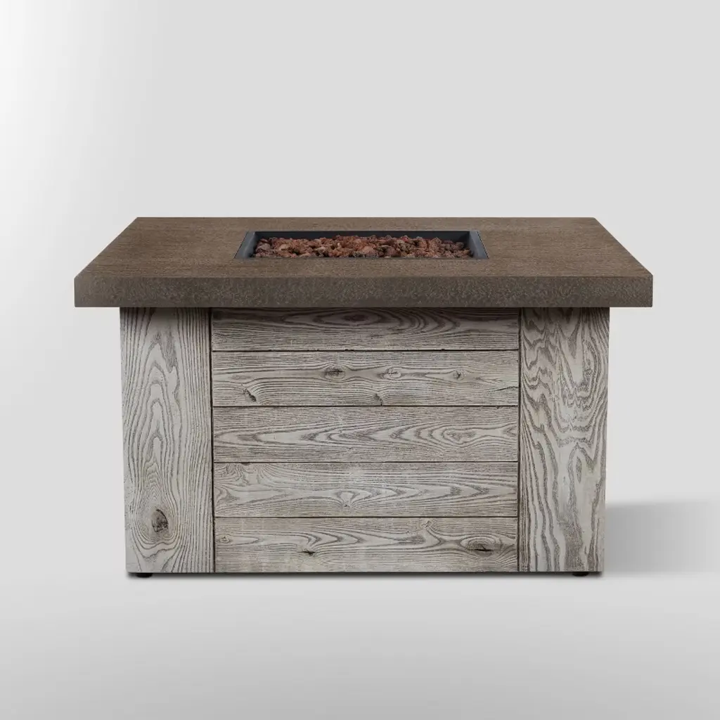 Warm and welcoming, the Forest Ridge Gas Fire Table will make a stunning addition to your outdoor space. Made from fiber-cast concrete this fire table produces 50,000 BTUs of heat and uses a standard 20lb. propane tank (not included) that is hidden inside the table. The Forest Ridge includes: Fire table, LP hose and regulator, adjustable feet, lava rock filler, protective cover, electronic ignition andNatural Gas conversion kit.