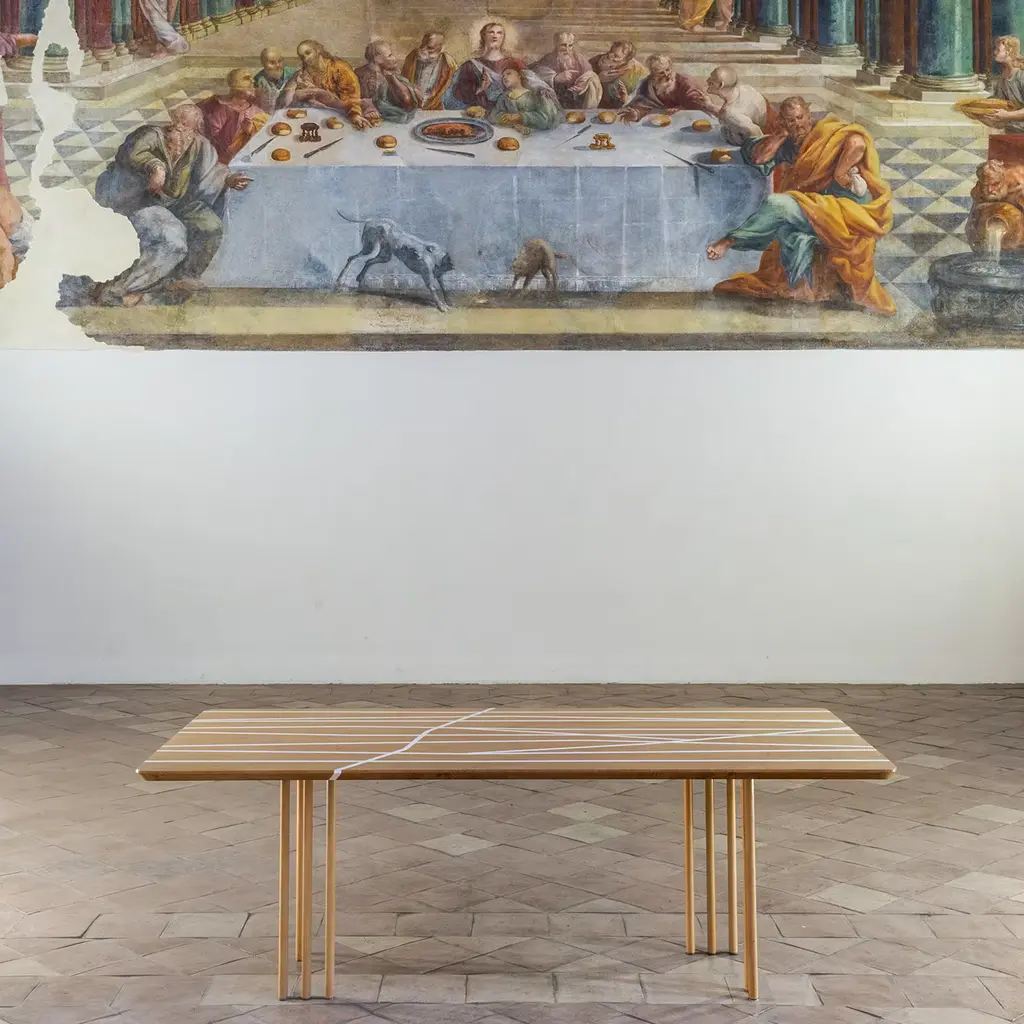 Designer Stefano Trapani chose a simple shape for this superb table so as to allow the natural beauty of the myrtle and cedar wood to take center stage. Conveying a timeless allure, the design features a main structure in prized myrtle briar wood supported by cylindrical cedar legs arranged in groups of three and two. A variant measuring 160x154xH79 cm is also available, please contact the Concierge for details.
