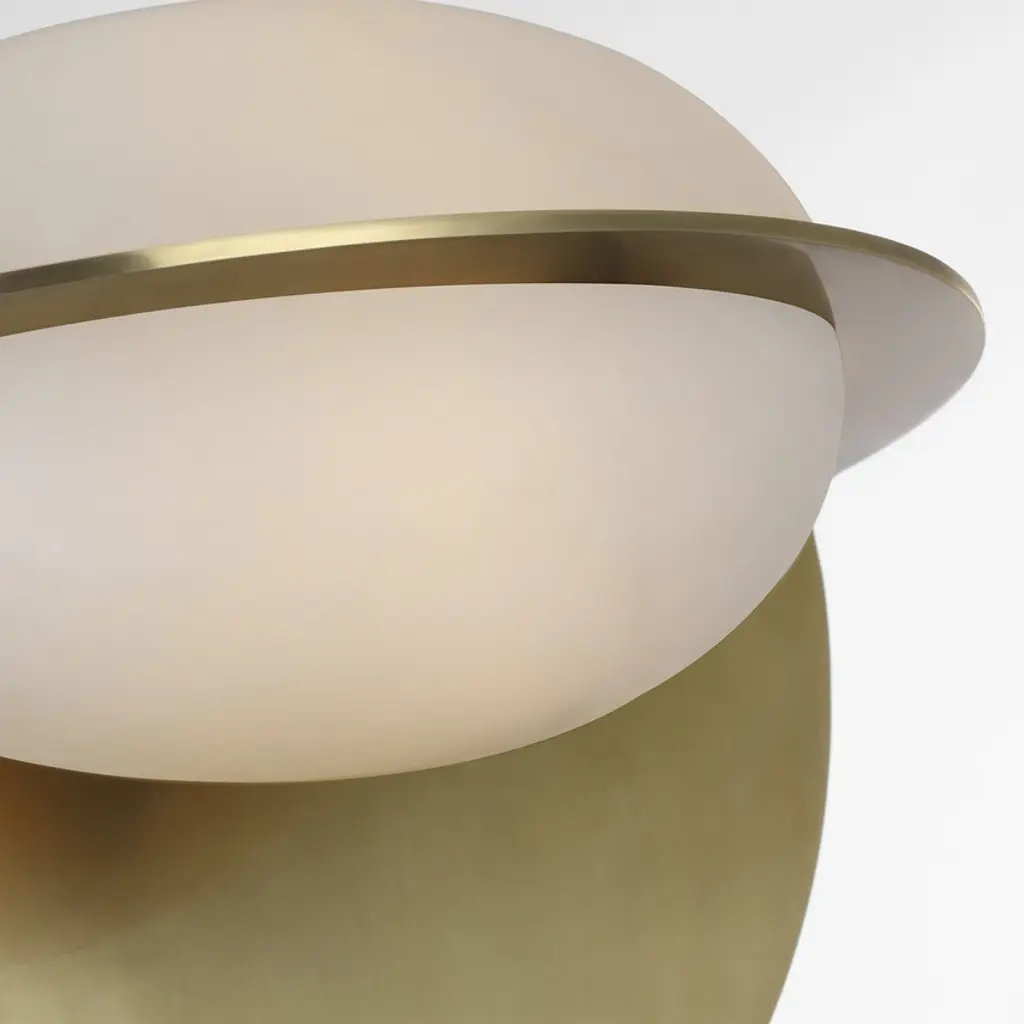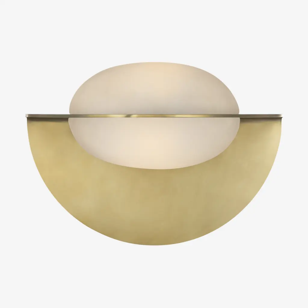 The Fosse 9" Invertable Oval Sconce is a compact yet impactful wall light designed for maximum versatility. Featuring an white alabaster diffuser and curved brass backplate, this fixture can be mounted in either orientation to suit a variety of spatial compositions and lighting effects. Ideal for smaller spaces, tight corridors, or creative gallery-style installations, the sconce provides a soft, glowing light while maintaining a strong architectural presence. Its compact form and premium materials make it a perfect accent for refined residential and boutique hospitality settings. With its reversible design and sculptural minimalism, the Fosse 9" Sconce delivers adaptability, elegance, and timeless modern style in one compact package.