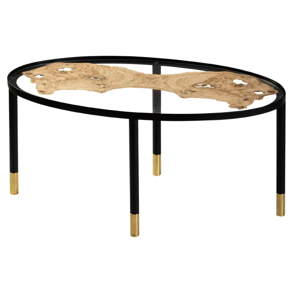 The Fossil line simulates the natural processes through which plant or animal elements get imprisoned in tree resins, preserving their state and their splendor over the centuries. Encased in glass, the precious woods enhance the beauty of this material and create new meanings: the veneer becomes an object to be exhibited and preserved, losing its function of simple coating. The frame is made of black lacquered iron, glass and centuries-old olive burl coming from the Hebanon vault.