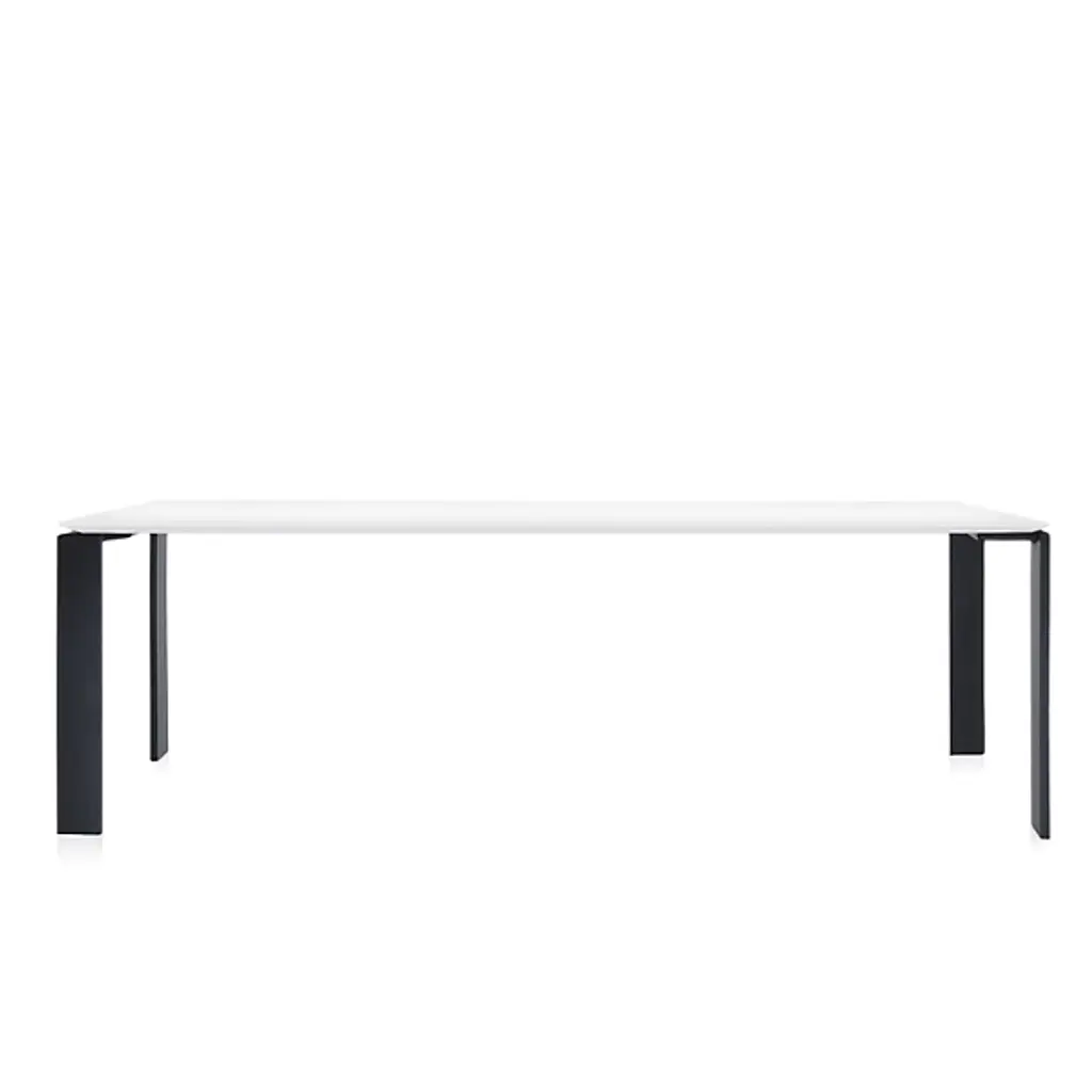 The Kartell Four Table designed by Ferruccio Laviani is a functional and refined table with a strict geometric design. Due to the elegant design solution, the position of the slim table top allows for the convenient positioning of drawers or storage furnishings for computer hardware. The Four Table features a 0.98 inch thick table top in stratified laminate combined with a varnished steel structure.