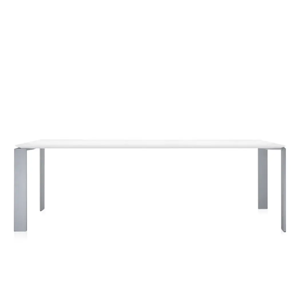 The Kartell Four Table designed by Ferruccio Laviani is a functional and refined table with a strict geometric design. Due to the elegant design solution, the position of the slim table top allows for the convenient positioning of drawers or storage furnishings for computer hardware. The Four Table features a 0.98 inch thick table top in stratified laminate combined with a varnished steel structure.