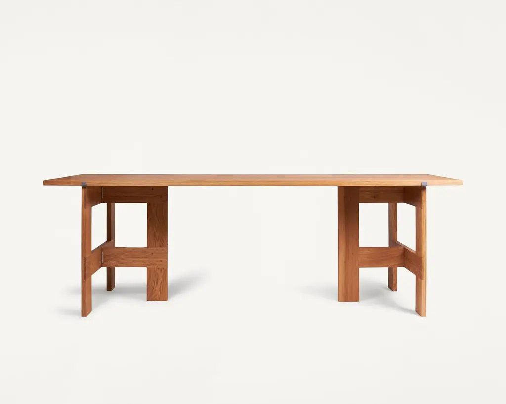 In the sentiment of traditional farmhouses, the Farmhouse Table embodies the notion of simple countryside life — expressing a rural aesthetic. Composed of two trestles used in conjunction and a two-panel plank tabletop, the visible trestles resemble the exposed beams apparent at traditional farmhouses.Features– Flat packed– Includes two trestles, two support brackets, and tabletop planks– Trestles can support a wide range of tabletops.