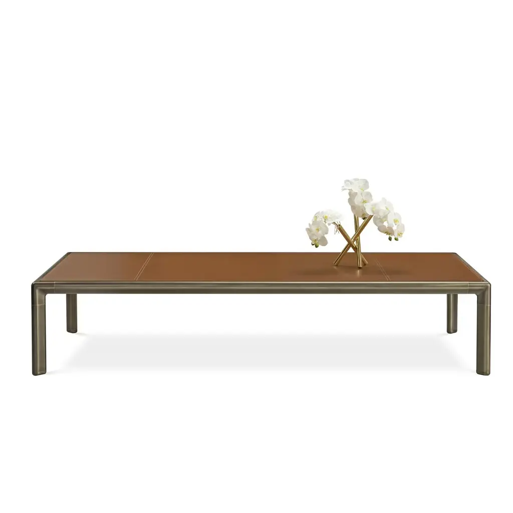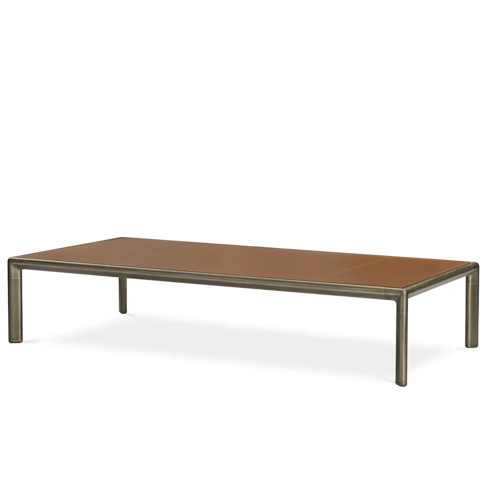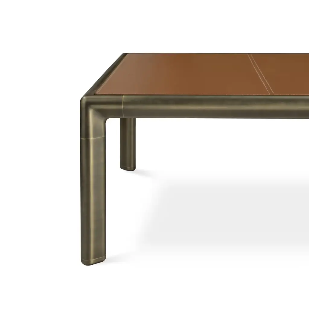 Elegant and functional, the Frame Coffee Table in aluminum, wood and burnished brass with leather on the top is ideal in any environment. Modern in style with clean and simple lines for a versatile accessory to compliment your contemporary living area or lounge room.