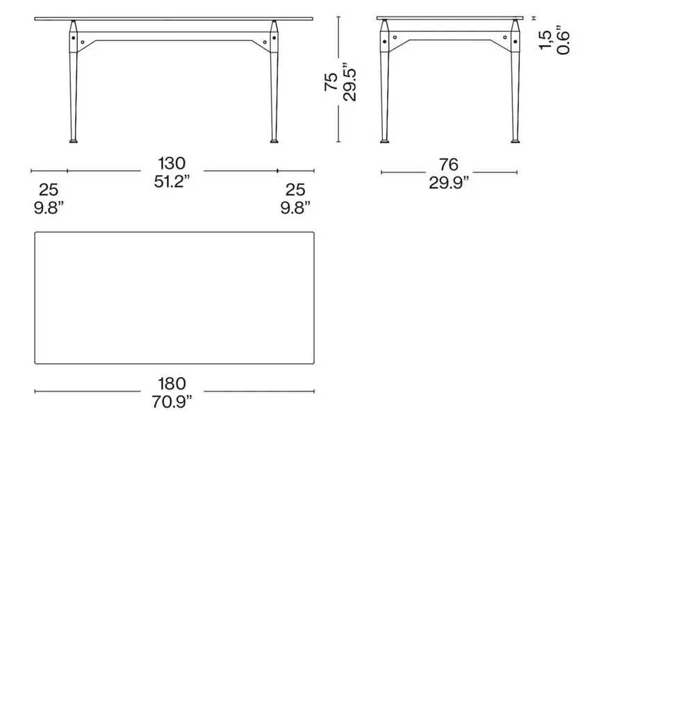 Franco Albini TL3 Table For CassinaA design table with an innovative take-apart concept for which architect Franco Albini uses the strut component, a recurring theme in his concept and a solution already employed in the iconic Veliero and Infinito bookcases.The legs are made of unique, almost completely turned blocks while a wood cone tops each support, creating a dynamic disconnect that highlights the visual lightness of the whole, accentuating the almost airy suspension of the rectangular top.The Cassina re-edition, working closely with the Fondazione Albini and based on the original archive designs, also includes the addition of a glass table top that showcases the impeccable fine joinery details.BASESolid ash wood or American walnut, square or rectangular version.TOPGlass.Franco Albini designed this table using the strut element that he had already employed in the design of the Veliero and Infinito bookshelves. In this instance, the legs serve as the vertical elements, solid, turned along their entire surface except for the square section onto which the horizontal table- top is installed. The upturned wooden cones that surmount each leg act as spacers between the cross-beams of the frame and the table-top which, given how light it looks, almost seems to hang suspended in mid-air. The connection between the legs and the cross-pieces is highlighted by visible screws. These remind us that the TL3 table can be disassembled. Cassina’s revisitation of this table, effected in collaboration with the Fondazione Albini, is based on archive drawings and includes the use of a glass table-top so that the impeccable carpentry details can be seen more clearly.Important information regarding images of products:Please note that some of the images show other colors and variations of the model, these images are only to present interior design proposals. The item that is selling is on the first image.Important information regarding color(s) of products:Actual colors may vary. This is due to the fact that every computer monitor, laptop, tablet and phone screen has a different capability to display colors and that everyone sees these colors differently. We try to edit our photos to show all of our products as life-like as possible, but please understand the actual color may vary slightly from your monitor.About the Designer:He was a major figure in the Rationalist Movement, excelling in architectural, furniture, industrial and museum design. After receiving a degree in architecture from the Politecnico di Milano in 1929, he worked with the Ponti and Lancia design studios. His work for the magazine Casabella also played a key part in his development, marking his conversion to the Rationalist Movement and his becoming its spokesman on the Italian cultural scene. When he set up his own practice in Milan in 1931, he took on the challenge of workers’ housing and continued in this vein after the war, thanks to the opportunities offered by the reconstruction projects he worked on with Franca Helg from 1952.During the 1940’s, Albini expanded his collaboration with Cassina, which started with chair designs that paved the way for his signature style. He also pursued his furniture designs with other firms, such as Poggi. Milan and Genoa form the geographical axis where Albini left his strongest imprint. For the Lombard capital, he planned the development of the stations on Line 1 of the city’s subway system (1962/63), in collaboration with graphic designer Bob Noorda. His numerous urban development and building projects for Genoa include the Palazzo Bianco (1949/51), Palazzo Rosso (1952/62), and Tesoro di San Lorenzo (1952/56) museums. Franco Albini was the recipient of many honors in recognition of the importance of his cultural contributions.Among others, he is a member of the INU, the CIAM, the Accademia Ligustica di Genova, MOMA in New York, the ADI, the Accademico di S. Luca, the Fondazione Pagano and the London Royal Society of Arts.He also received numerous prizes, including the La Rinascente-Compasso d’Oro for the design of the Luisa chair (1955), the Bronze Medal from the Parson School in New York (1956) for his contribution to industrial design, the Olivetti Award for Architecture (1957), the Gran Premio Nazionale La Rinascente-Compasso d’Oro (1958), the La Rinascente-Compasso d’Oro Award for the Milan Line 1 Subway project (1964), and the Royal Designer for Industry title awarded by the London Royal Society of Arts (1971). In all his work, from home furnishings to industrial and museum design projects, Franco Albini always instilled a logical consistency, an extreme purity of expression and exceptional ethical and historical integrity.The architectural and design work of Franco Albini represents a keystone of the Italian architectonic culture from the early 20th century through his intense activity revolving around a creative and rigorous approach to composition and building that expresses a particularly high degree of estheticismAbout Manufacture:Established in 1927 by Cesare and Umberto Cassina in Meda, Italy, Cassina launched industrial design in Italy in the 1950s, based on a totally innovative approach that marked the transition from artisan production to mass production. With a mindset focused on research and innovation, Cassina combines technology and long-standing artisan craftsmanship. Memory, research, innovation. Cassina blends traditional skills and superior productivity, meticulous attention to detail and passion, uniqueness and experimentation, wellbeing and sustainability. Today, the company continues to address new lifestyles with the creation of complete, harmonious interior decor solutions that embody the best contemporary design for all areas of the home.
