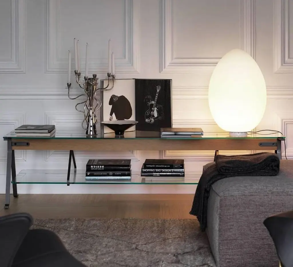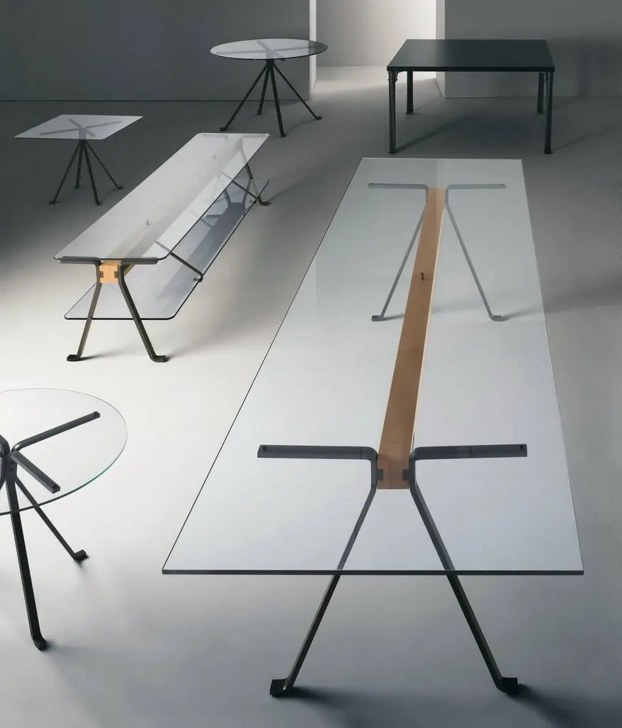 "Fratello" is a low double-top table, designed by Enzo Mari and manufactured by Driade, with a black anthracite painted steel sections structure braced through a solid beechwood beam with rectangular tempered glass th.0.39" tops.Indoor use only.DIMENSIONS:D. 19.6", W. 78.7", H. 19.6"Enzo Mari was thinking clearly as usual when he decided to realize this tables collection using transparent crystal tops in order to valorize the harsh simplicity of steel sections bases. Designed in 1973 and uninterruptedly produced since then, these pieces can be certainly numbered among the most successful ones by the Italian design master.ENZO MARI is universally considered as one of the greatest theorists of Italian and world design. Since the 50s he has been participating in avant-garde design movements, joining the group of Kinetic Art where he met Bruno Munari, who influenced some of his future works. By the 60s he already held a prominent position on the Italian design scene, with a particular focus on the functional aspects of products. In his work Mari addresses “problems with the psychology of vision and programming in the field of aesthetic research”, always in the context of reflection “on human work (...) from the intellectual/planning phase to manual or industrial execution” (Burkhardt, 1997).In 1972 Mari took part in the "Italy – The New Domestic Landscape" exhibition at the MOMA in New York. Mari’s works are displayed in the world's most important art and design museums, including the Galleria Nazionale d’Arte Moderna in Rome, the New York Museum of Modern Art and the Louvre in Paris. His hundreds of projects are all marked by a strong theoretical approach and include children’s books, graphics, kitchen utensils, table accessories and furnishings for Alessi, Driade, Hermés, Zanotta, and Zani & Zani. He won four "Compasso d'oro" design awards.