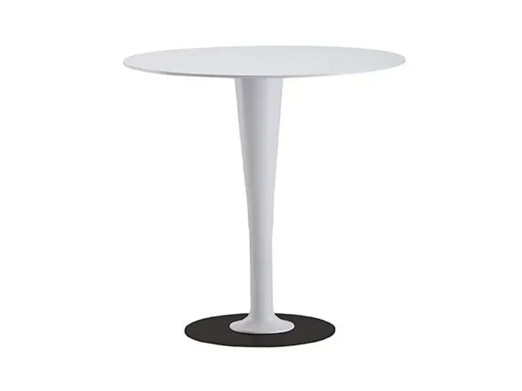 A hymn to fantasy ! Changing the design and the finishing of the solid wooden stand FREGOLI takes on a tone now classic and austere, now playful and ironic to fit any room where a table with central leg is requested. Tabletops are proposed in different versions, sizes and shapes.Collection of tables with flat iron base painted or with stainless steel cover mirror polished or brushed; the different kinds of stand are made of solid wood stained or lacquered. The top, square or round, can be made in lacquered MDF with slanted edge, in laminate or veenered with plywood slanted edge, in solid HPL laminate or veenered beechwood with straight edge.