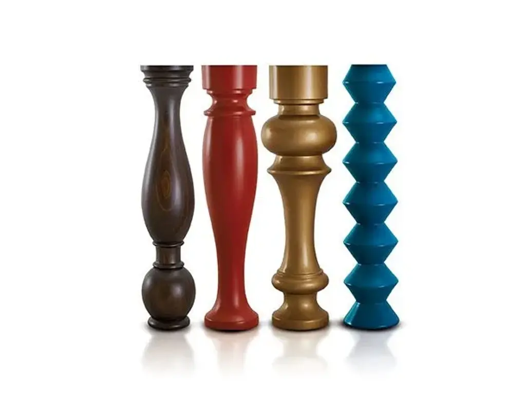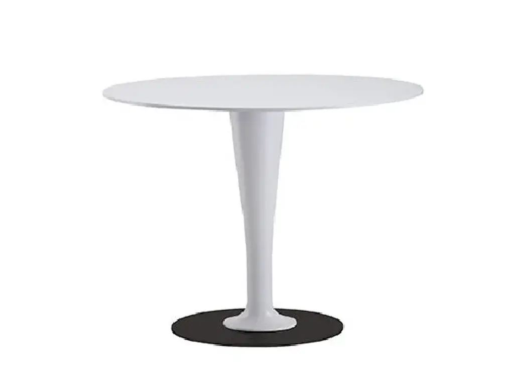 A hymn to fantasy ! Changing the design and the finishing of the solid wooden stand FREGOLI takes on a tone now classic and austere, now playful and ironic to fit any room where a table with central leg is requested. Tabletops are proposed in different versions, sizes and shapes.Collection of tables with flat iron base painted or with stainless steel cover mirror polished or brushed; the different kinds of stand are made of solid wood stained or lacquered. The top, square or round, can be made in lacquered MDF with slanted edge, in laminate or veenered with plywood slanted edge, in solid HPL laminate or veenered beechwood with straight edge.