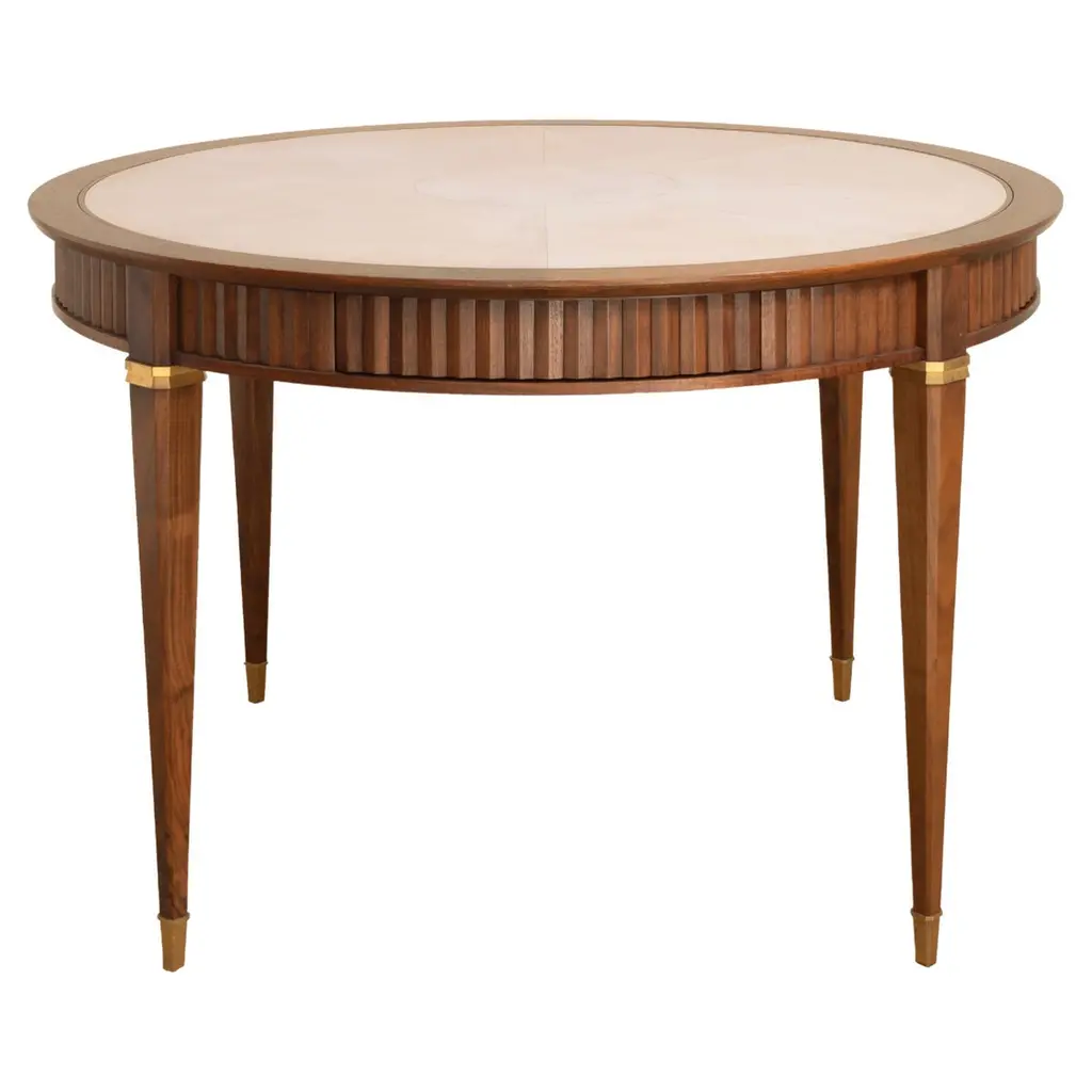 French Directoire Style Round Table In Solid Cherry Wood, White-Cream Lacquered