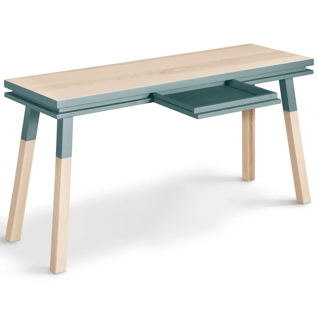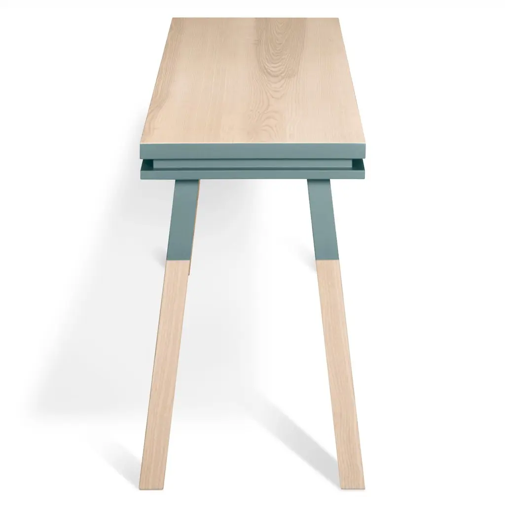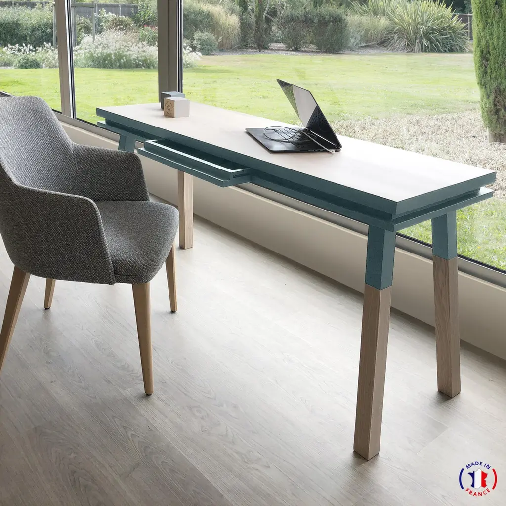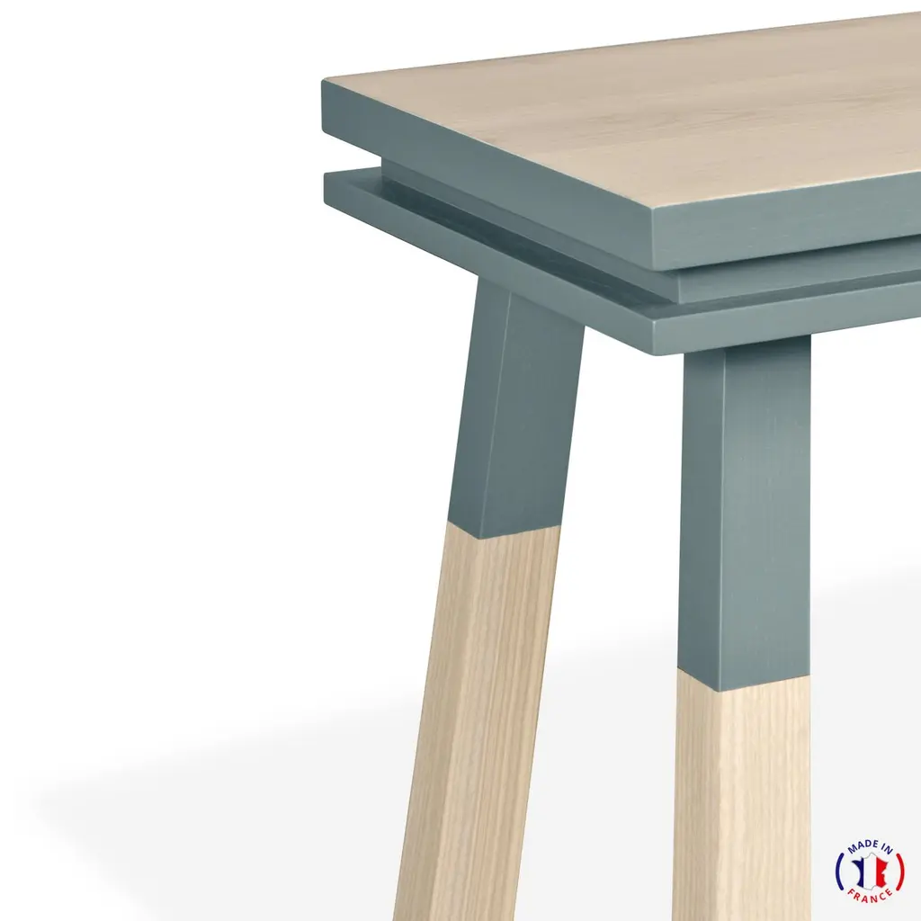 This grey blue rectangular console table / desk is designed by Eric Gizard in Paris. It is 100% made of solid ash wood from sustainably managed and PEFC certified French forests. Collection ÉGÉEThis desk is part of the ÉGÉE collection designed by Eric Gizard in Paris. Eric combines the sleek and refined codes of Scandinavian design with natural materials and muted and "trendy" colorful lacquers. Mon Petit Meuble Francaisprovides exclusively 100% Made in France Furniture. The manufacture and finishes are of very high-end quality, carried out in French craft workshops, in the west countryside of France: Loire and Bretagne. Solid ash comes from sustainably managed French forests.