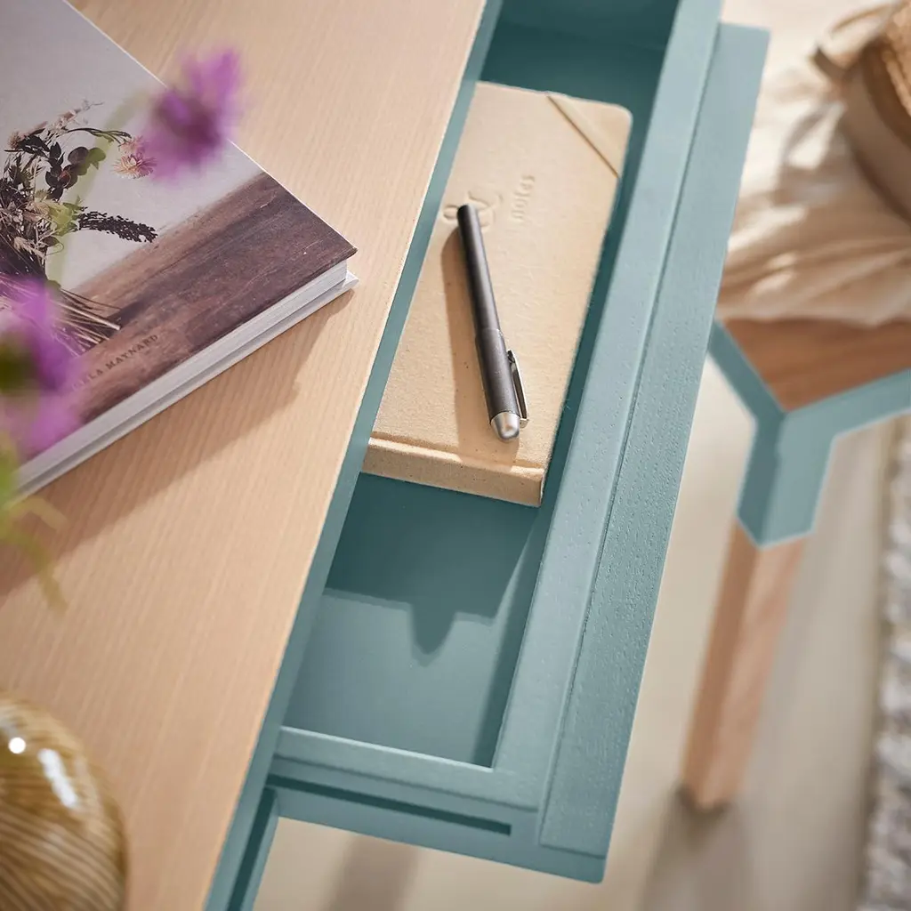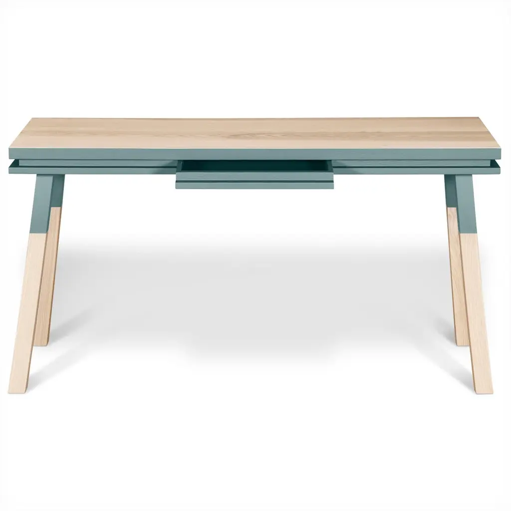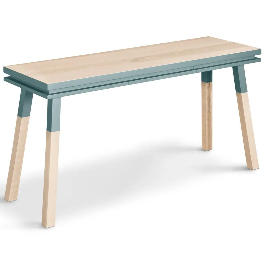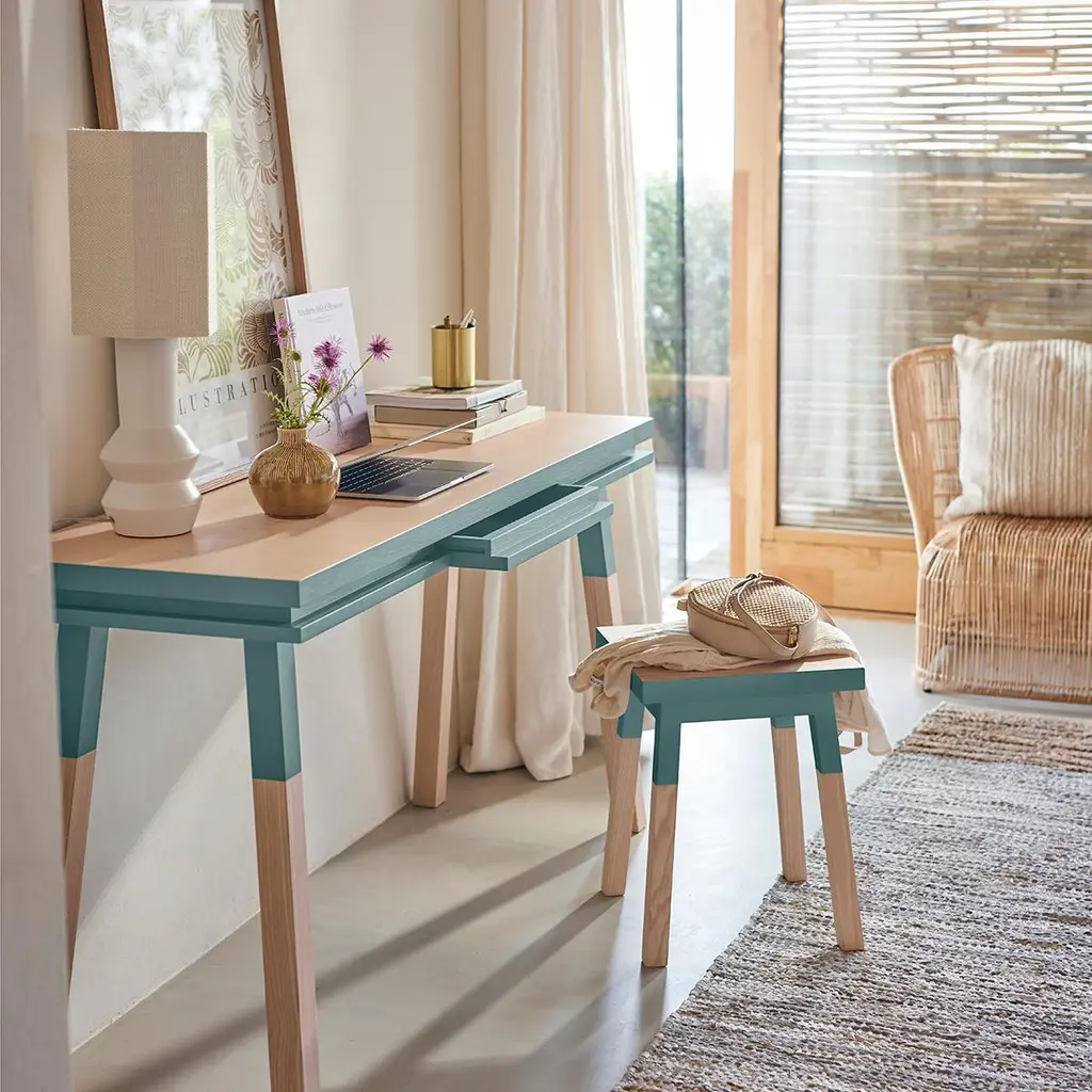 This grey blue rectangular console table / desk is designed by Eric Gizard in Paris. It is 100% made of solid ash wood from sustainably managed and PEFC certified French forests. Collection ÉGÉEThis desk is part of the ÉGÉE collection designed by Eric Gizard in Paris. Eric combines the sleek and refined codes of Scandinavian design with natural materials and muted and "trendy" colorful lacquers. Mon Petit Meuble Francaisprovides exclusively 100% Made in France Furniture. The manufacture and finishes are of very high-end quality, carried out in French craft workshops, in the west countryside of France: Loire and Bretagne. Solid ash comes from sustainably managed French forests.