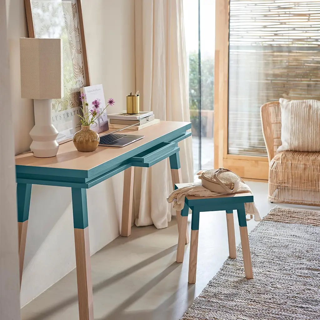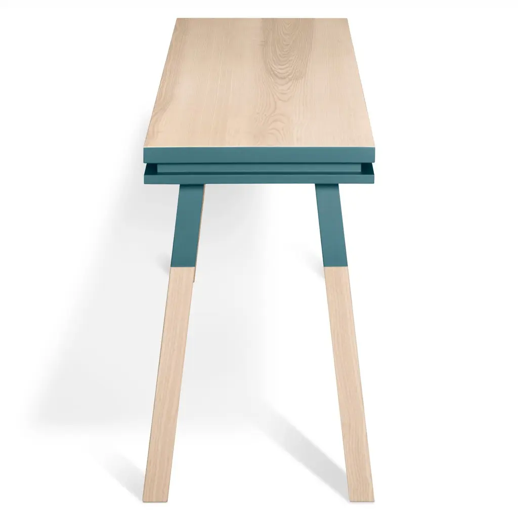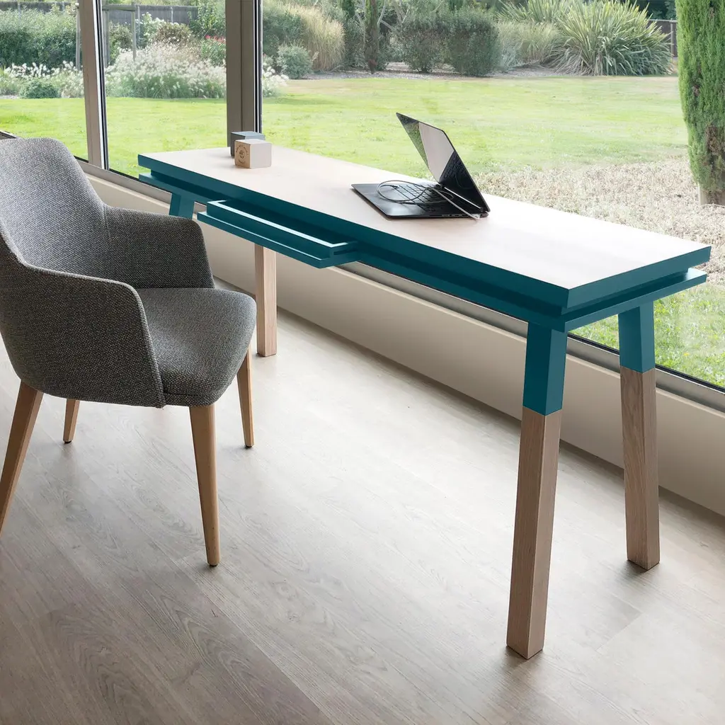 This light blue rectangular console table / desk is designed by Eric Gizard in Paris. It is 100% made of solid ash wood from sustainably managed and PEFC certified French forests. Collection ÉGÉEThis desk is part of the ÉGÉE collection designed by Eric Gizard in Paris. Eric combines the sleek and refined codes of Scandinavian design with natural materials and muted and "trendy" colorful lacquers. Mon Petit Meuble Francaisprovides exclusively 100% Made in France Furniture. The manufacture and finishes are of very high-end quality, carried out in French craft workshops, in the west countryside of France: Loire and Bretagne. Solid ash comes from sustainably managed French forests.