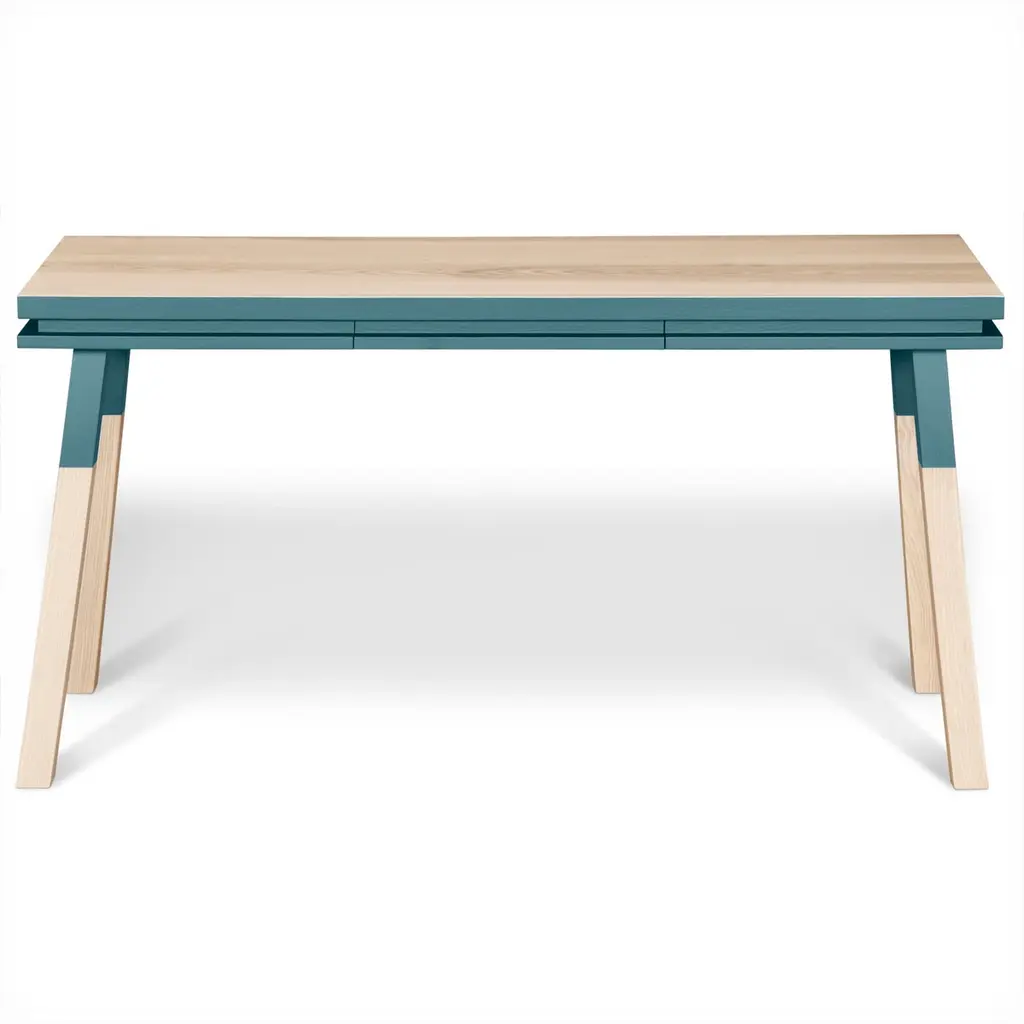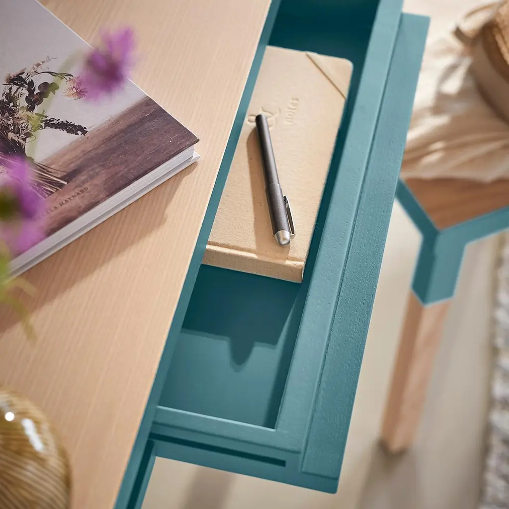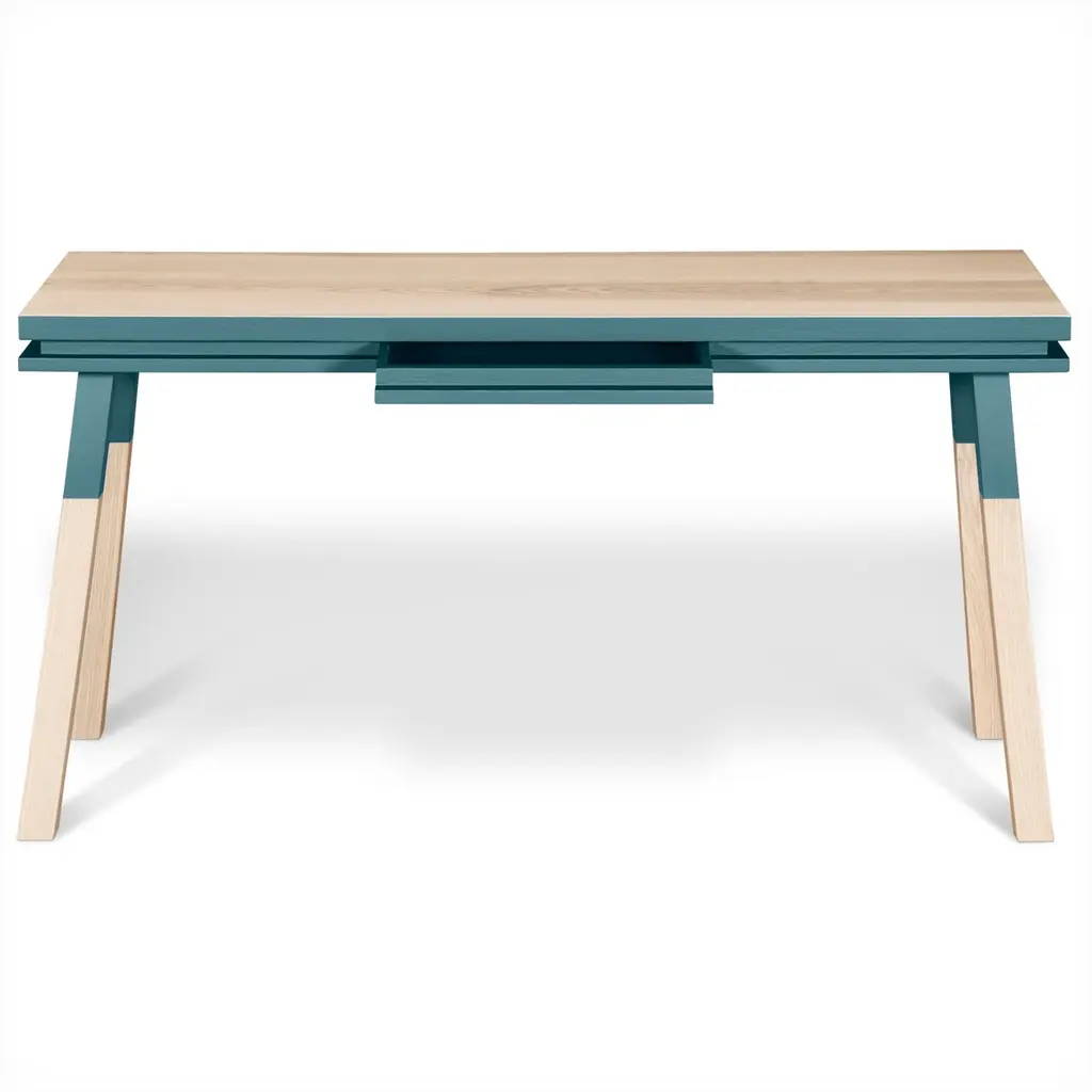 This light blue rectangular console table / desk is designed by Eric Gizard in Paris. It is 100% made of solid ash wood from sustainably managed and PEFC certified French forests. Collection ÉGÉEThis desk is part of the ÉGÉE collection designed by Eric Gizard in Paris. Eric combines the sleek and refined codes of Scandinavian design with natural materials and muted and "trendy" colorful lacquers. Mon Petit Meuble Francaisprovides exclusively 100% Made in France Furniture. The manufacture and finishes are of very high-end quality, carried out in French craft workshops, in the west countryside of France: Loire and Bretagne. Solid ash comes from sustainably managed French forests.