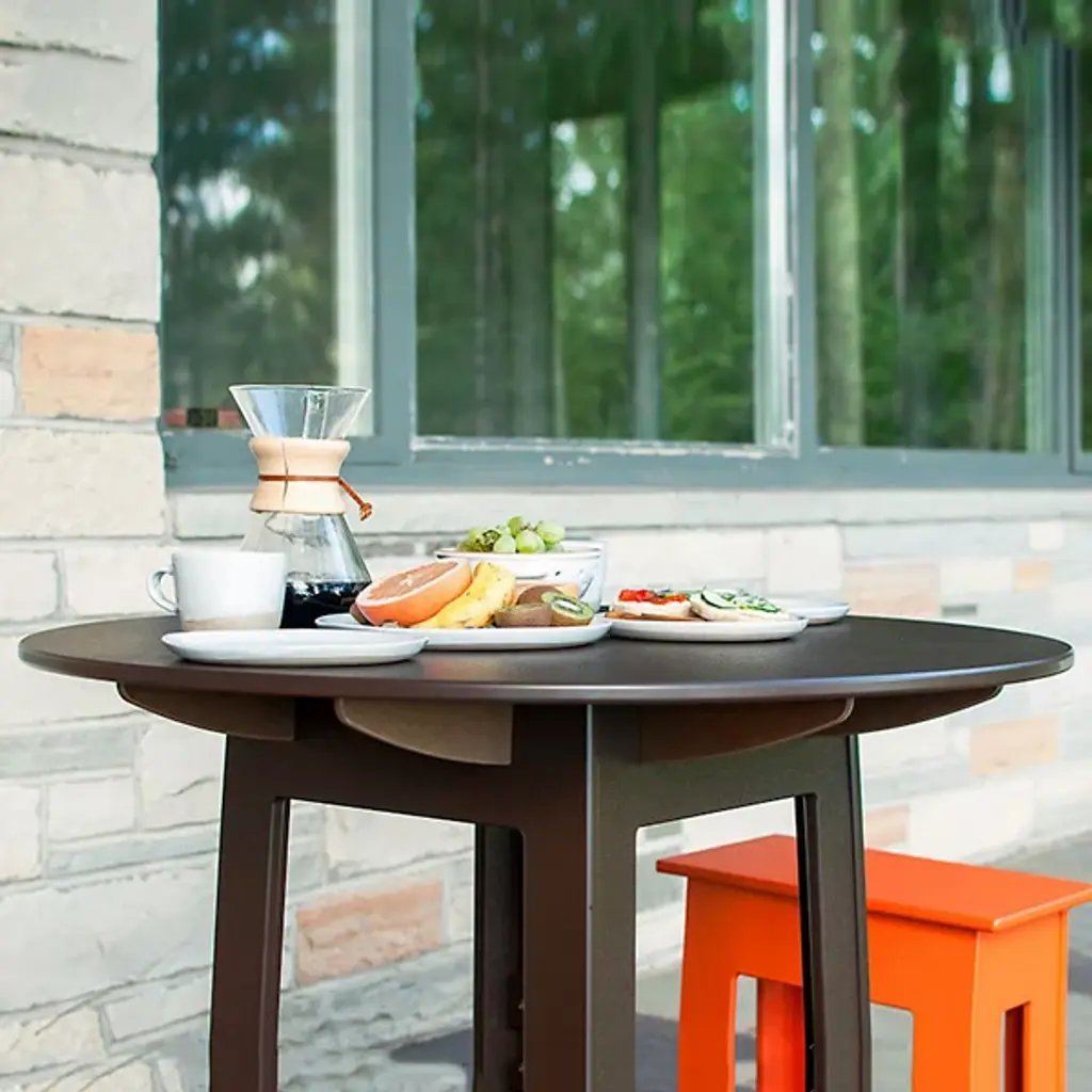 Contemporary and environmentally friendly. The Fresh Air Round Cafe Table from Loll designs has a simple and modern look that will fit in wherever you place it. It is an outdoor table—as the name implies—so that you can enjoy good food and friends out in the fresh air. It’s made out of recycled milk jugs (and non-recycled HDPE) because they don’t have any pigment. Ideal for two people, this product offers a comfortable place to dine.