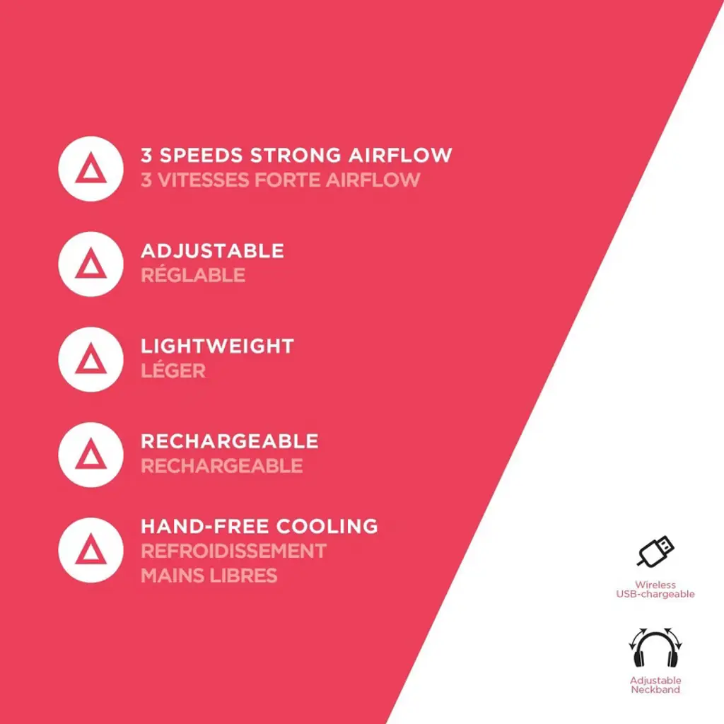 The Frigidaire Portable Neck Cooling Fan is designed for on-the-go comfort, offering hands-free cooling wherever you are. Its ergonomic, wearable design allows you to stay cool while keeping your hands free for other tasks. Perfect for outdoor activities, commuting, or travel, this fan provides a refreshing breeze with multiple speed settings for personalized comfort.