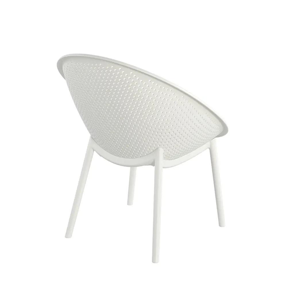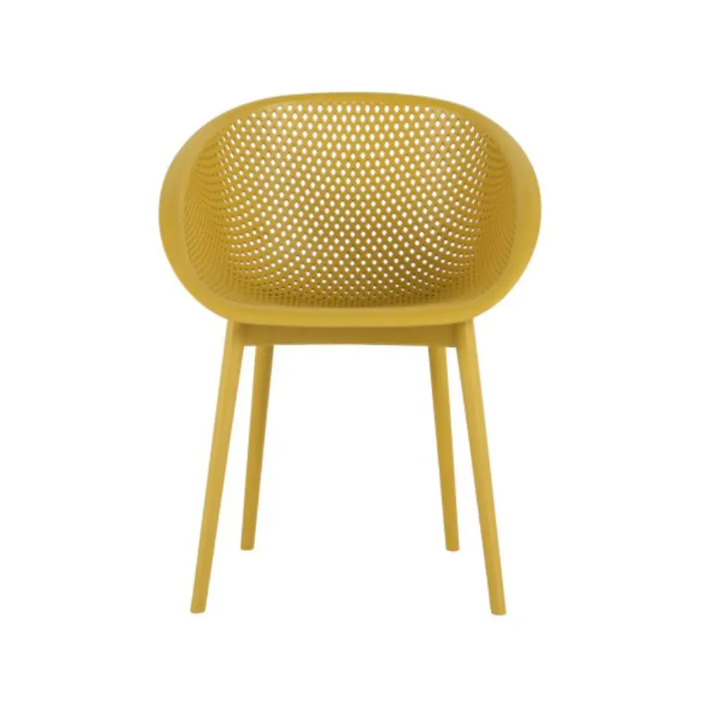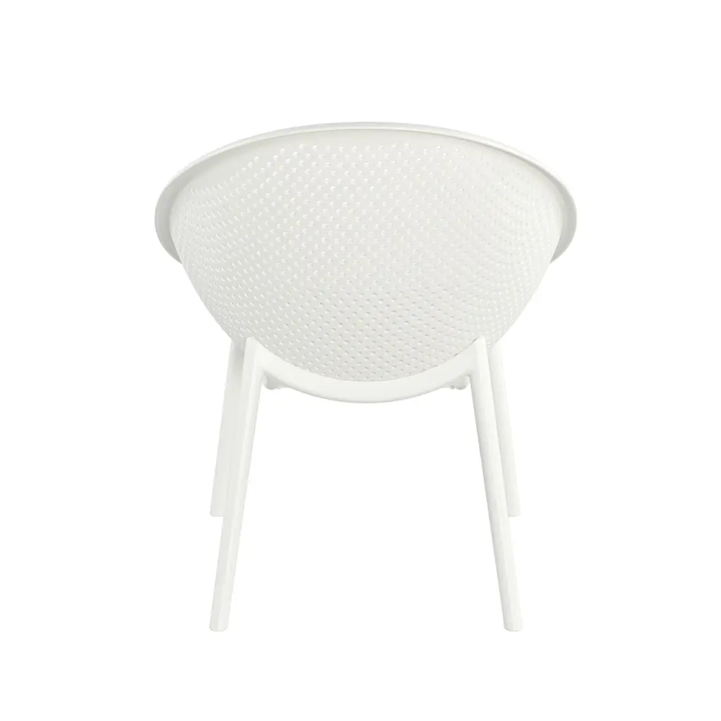 Modern style: With clean, precise lines and astonishingly stable frames, this accent chair set is created with a chic, minimalistic aesthetic and functionality in mind.Weather-resistant set: Our set consists of weather-resistant material known to resist water and sunlight. This durable set offers easy maintenance so you can spend all summer lounging outdoors in comfort.Polypropylene resin: Created with high-quality, specially designed polypropylene, our chair set is made to be highly durable and weather-resistant. Each individual component of our polypropylene blend is specifically chosen to create a unique mixture that ensures that your product is of the best quality.Dimensions: Choose an accessory that is the perfect size for you and your furniture. Each accent chair is 25.98" W x 30.51" D x 32.50" H. You will love how much your space can transform with the simple addition of this charming chair. It comes as a set of 2.