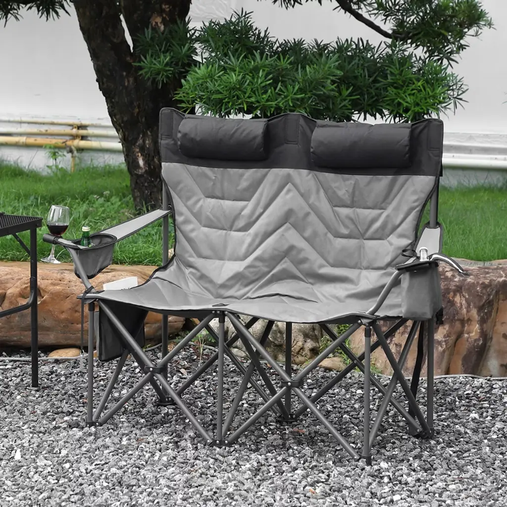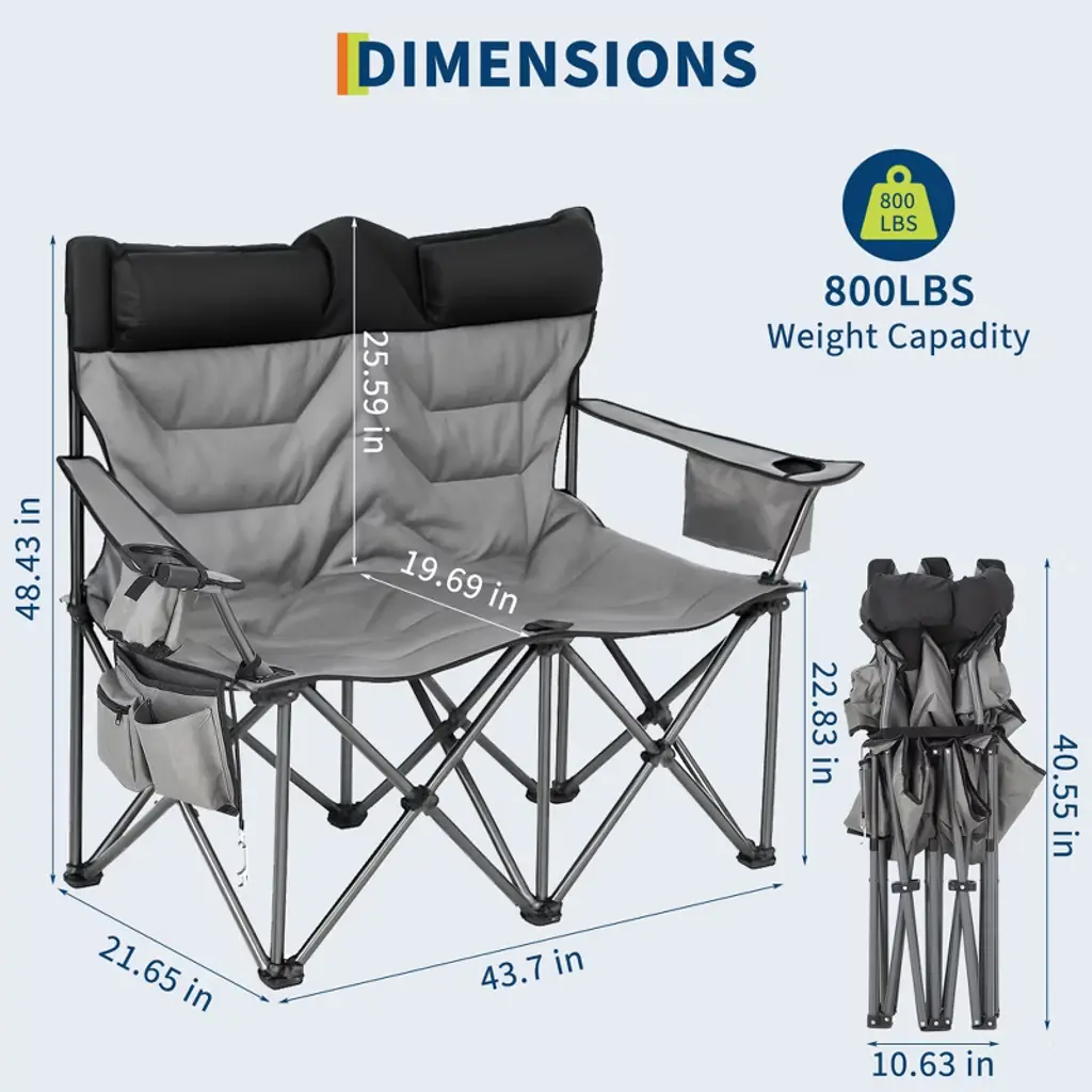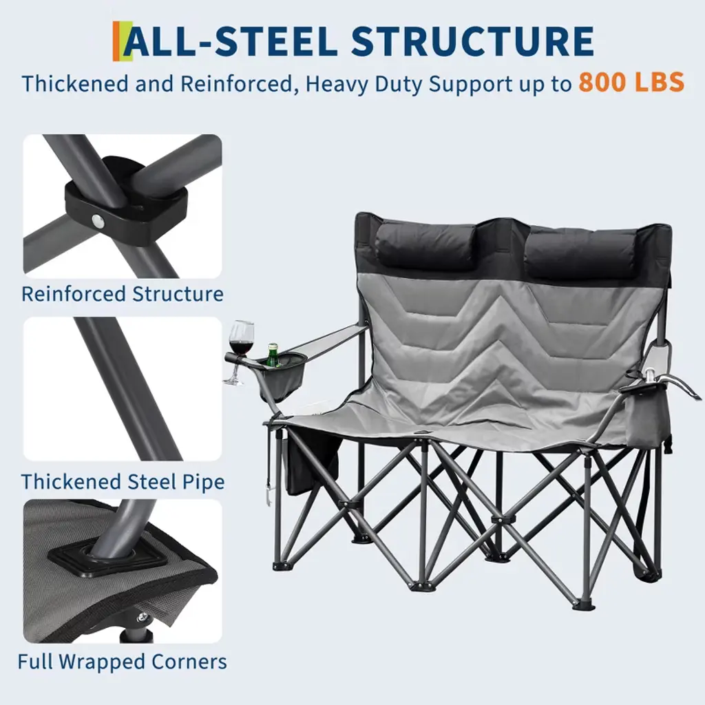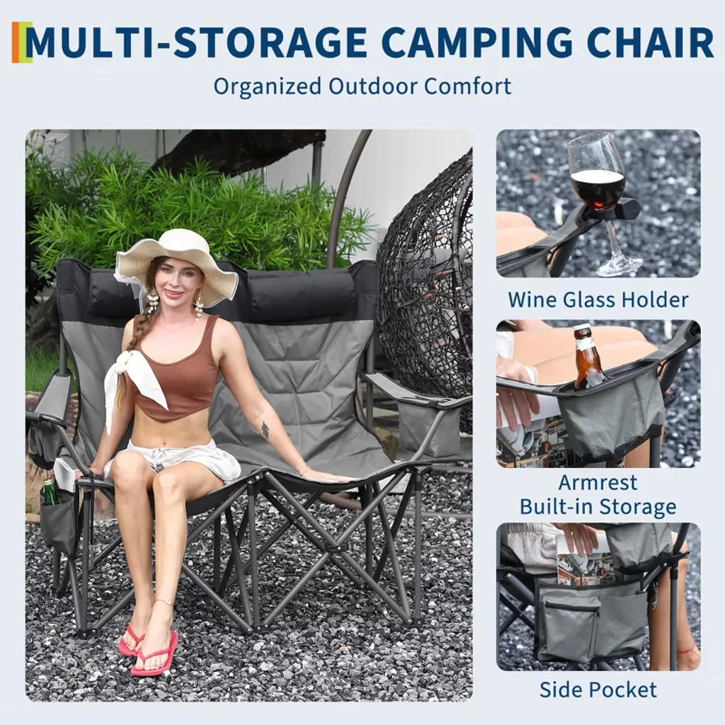 Garvee 2-person Oversized Folding Camping Chair, Outdoor Padded Portable Chair With Cup Holder, Cooler Bag, Bottle Opener, 450 Lbs Capacity