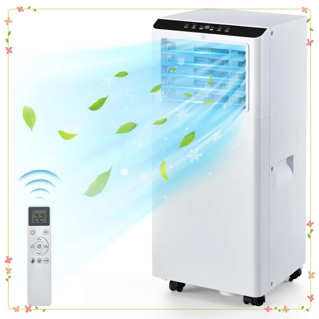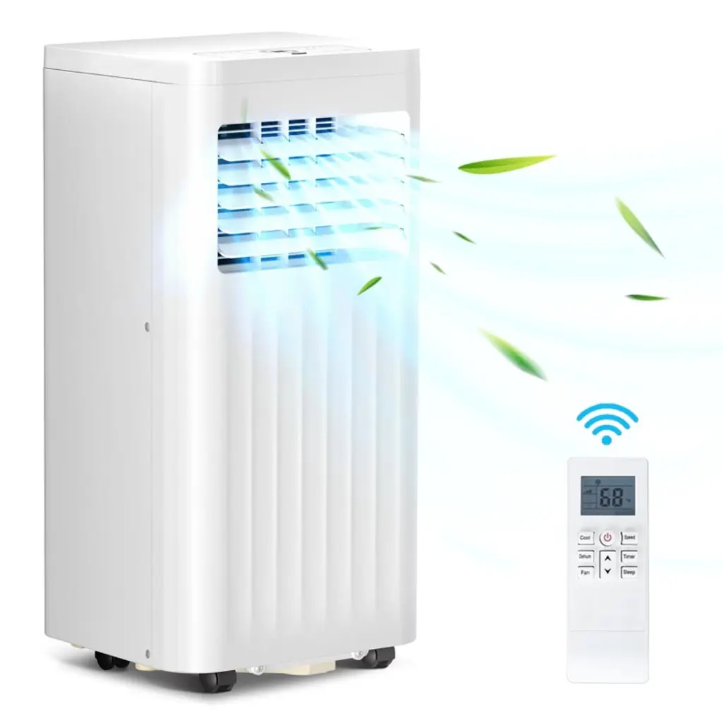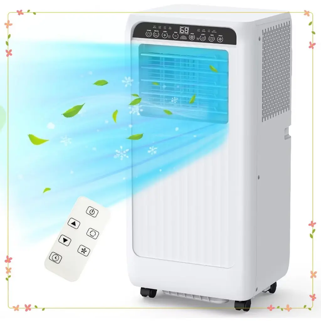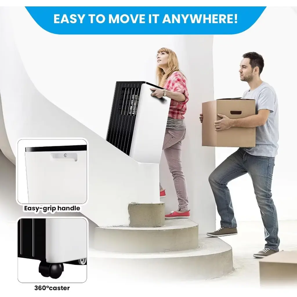 Description: Experience efficient cooling with this 8000 BTU portable air conditioner designed for spaces up to 350 sq ft. Featuring advanced compressor technology for precise temperature control and a 3-in-1 system offering cooling, dehumidification (45L/day), and dual-speed fan modes. The unit includes smart features like a 24-hour programmable timer, ultra-quiet sleep mode, and remote control. Easy to install with 360¡ã caster wheels, an adjustable window kit, and quick-connect exhaust hose. Durable ABS+PC construction with self-evaporation reduces maintenance. Dimensions: Product Dimensions: 13.07 inches depth x 12.99 inches width x 34.65 inches height Cooling Capacity: 8000 BTU (5,000 BTU SACC) Dehumidifying Capacity: 45 liters per day Voltage: 110V Noise Level: 55 dB normal, 48 dB sleep mode Color: Black Top Model: dnHprUXgFMbBSA-9ceC5CAm2M Energy Rating: 5 Star What You Get: 1 x Portable AC unit with cooling, fan, and dehumidifier functions 1 x Remote control with 32-foot range 1 x 5 ft exhaust hose and adjustable window adapter (26¡± to 46¡±) 1 x Drain hose for continuous dehumidification User manual with installation and maintenance instructions After-Sales Service: We provide comprehensive customer support including guidance on installation, troubleshooting, and maintenance. Our responsive team ensures timely assistance for any operational questions to guarantee your satisfaction and seamless product use.