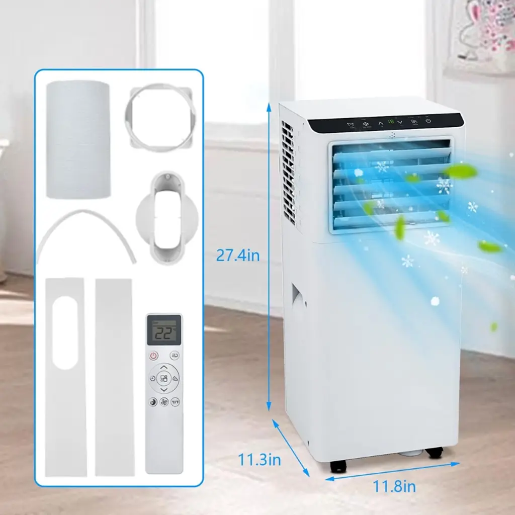 Beat the summer heat with this powerful and compact 8000 BTU portable air conditioner. Designed to cool rooms up to 350 square feet, it¡¯s the ideal solution for bedrooms, apartments, dorms, kitchens, or small offices. With its 3-in-1 functionality, this unit works as an air conditioner, dehumidifier, and fan¡ªgiving you versatile climate control all year round. This portable AC features a quiet design (as low as 53 decibels), a 24-hour programmable timer, and an energy-saving sleep mode. The self-evaporating system eliminates the need for manual drainage under most conditions, and the washable air filter ensures clean airflow and long-term use.