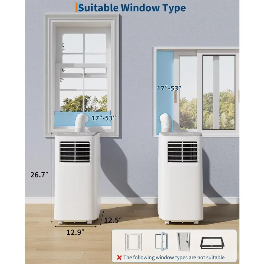 TROPOW 8,000 BTU Portable Air Conditioner ¨C Quiet, Energy-Efficient Cooling for Rooms up to 450 Sq.Ft with Auto Evaporation & Remote Control (White)Powerful Cooling for Small to Mid-Sized RoomsDelivers 8,000 BTU of cooling power, effectively lowering temperatures in spaces up to 450 sq.ft. Ideal for bedrooms, home offices, RVs, and compact living areas during hot summer days.Whisper-Quiet OperationDesigned for minimal disruption, this unit operates as quietly as 50 dB¡ªquieter than a typical conversation¡ªmaking it perfect for sleep, work, or relaxation environments.Fast & Tool-Free InstallationIncludes an adjustable window installation kit that fits windows 23"¨C34" wide with a minimum height of 14.5". Easy setup in under 15 minutes¡ªno tools required, ideal for renters or temporary spaces.Customizable Temperature ControlFeatures 7 cooling levels with intuitive mechanical dials for precise comfort. Easily adjust the temperature from light cooling to maximum refreshment for day or night comfort.Eco-Friendly & Low MaintenanceEnergy-efficient design helps reduce electricity bills. The built-in washable air filter promotes cleaner air and reduces waste, while the ventless, auto-evaporation system minimizes upkeep.