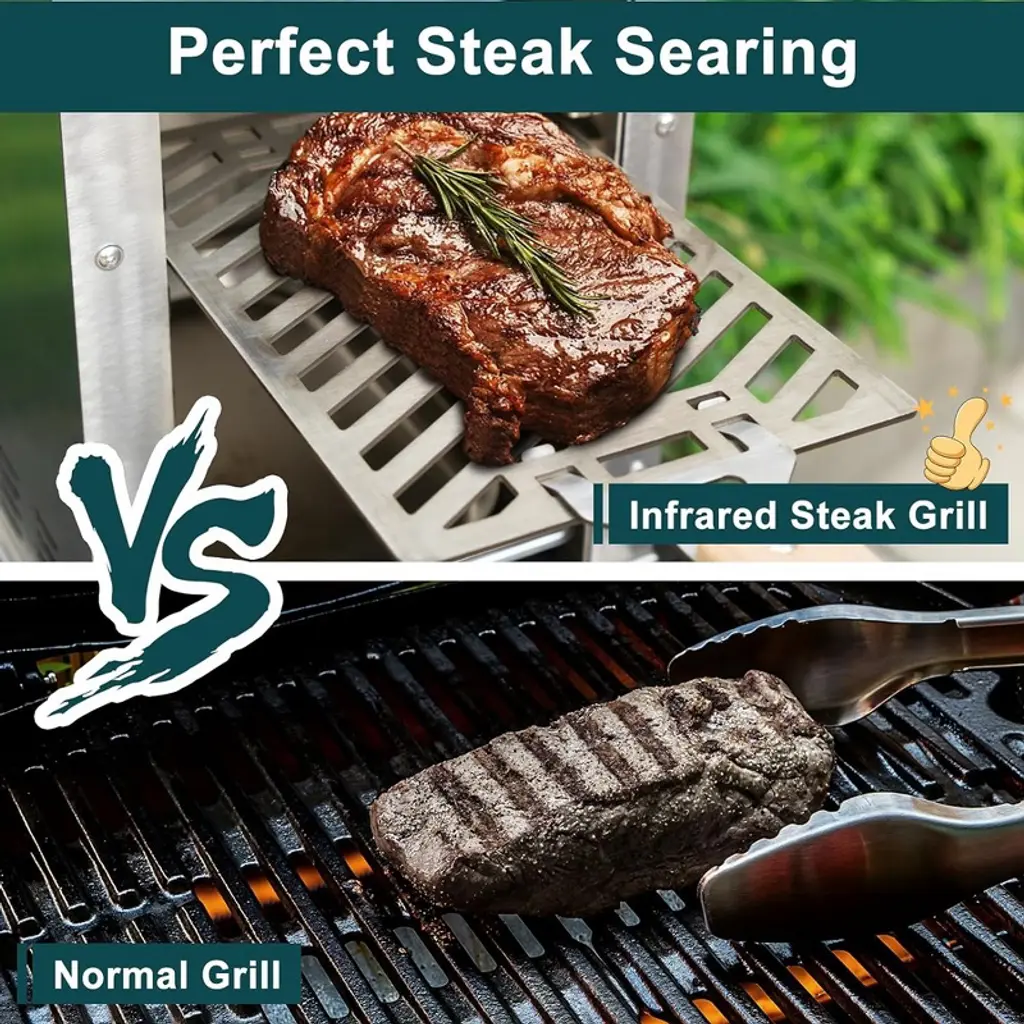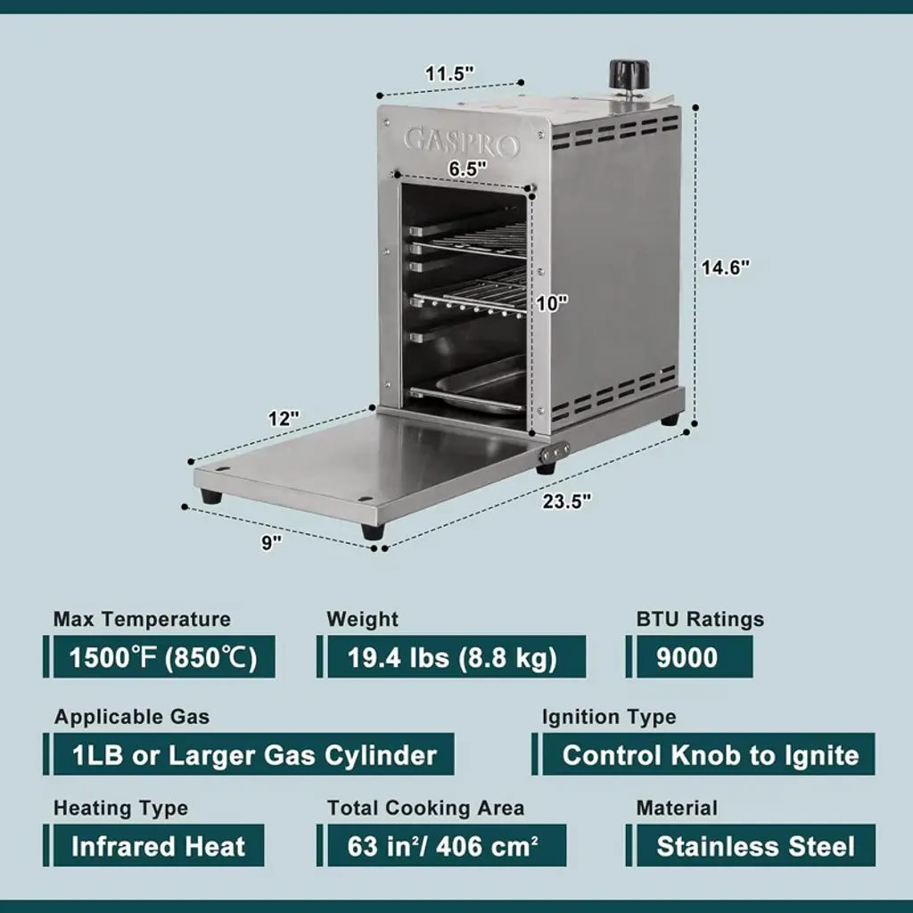 Gaspro 1500°f Professional Propane Infrared Steak Grill, Quick Cooking Portable Steak Broiler For Meat, Seafood, Veggies And More | Stainless Steel