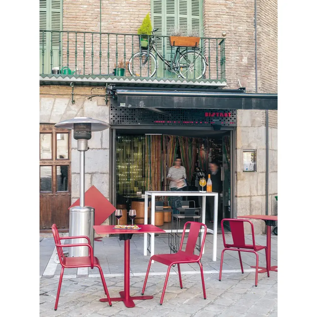 Genova is a collection made of galvanized steel, polyester powder coated. Suitable for outdoor, indoor, and contract use. Available table-tops: metal and compact.