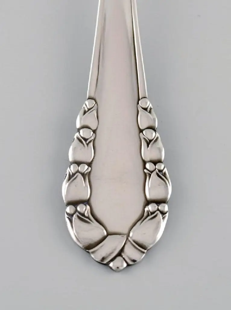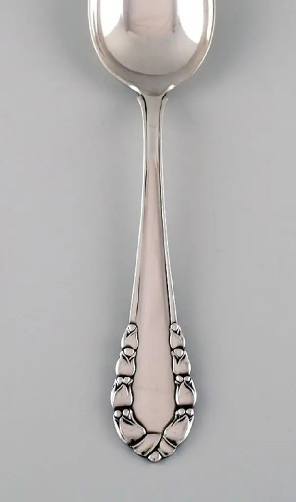 Georg Jensen Lily of the Valley tablespoon in sterling silver. Eight spoons are available.Length: 19.5 cm.In excellent condition.Stamped.Our skilled Georg Jensen silversmith / goldsmith can polish all silver and gold so that it appears new. The price is very reasonable.