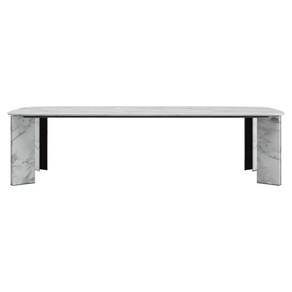 Gervasoni Large Inout Closed Table In Carrara Marble Top With Grey Aluminium