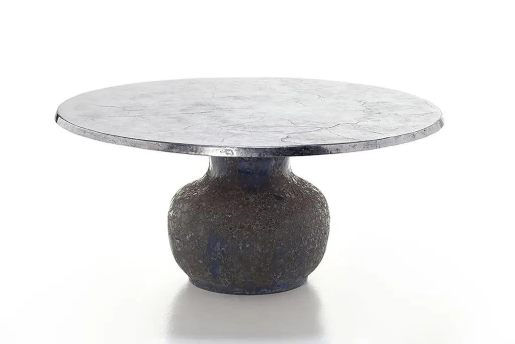 Gervasoni Moon 36 Round Table With Blue Ceramic Base & Cast Aluminium Top