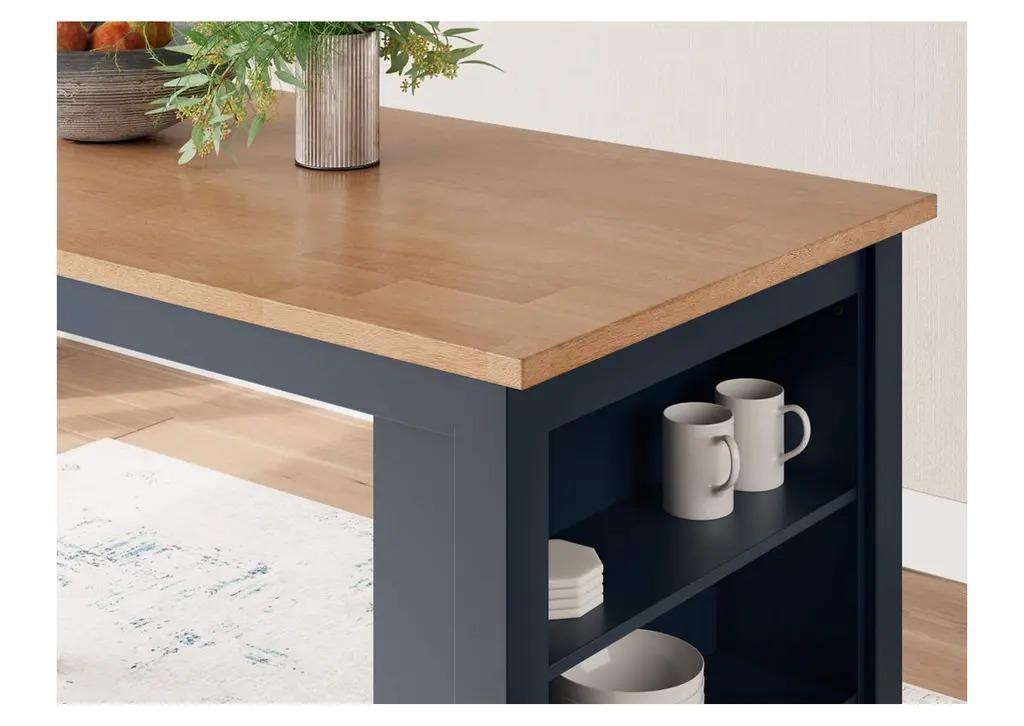 Complement your home’s simply relaxed sensibility with the Gesthaven dining package. A dark blue hue offers a chic contrast to the natural wood tone, for a casual look that vibes with a variety of aesthetics. Whether you're sipping your morning coffee, settling in for dinner or working from home, this set is smartly designed for everyday comfort and style.