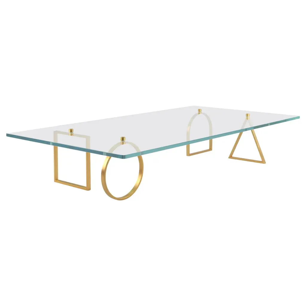 Small rectangle table in stainless steel finished in polished brass.
