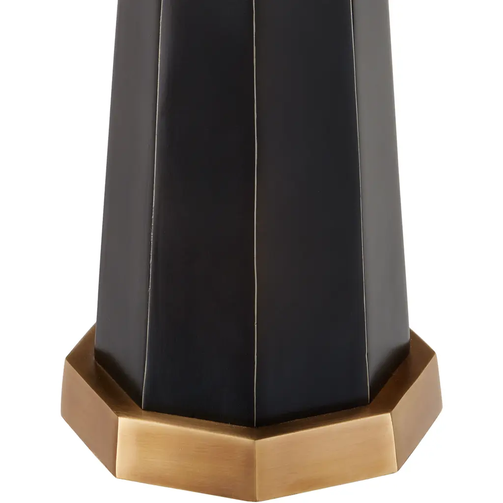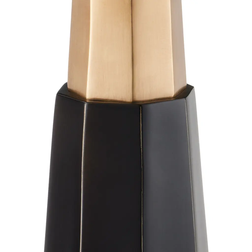 The Gieves Drinks Table is a sophisticated blend of rich materials and timeless design. Its round black granite top with a polished surface rests on a telescoping pedestal crafted from metal. The pedestal showcases a refined mix of antique brass and bronze finishes, creating a subtle interplay of warm metallic tones. Anchoring the design is a fluted base.