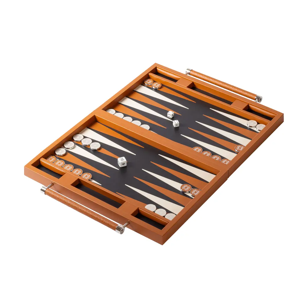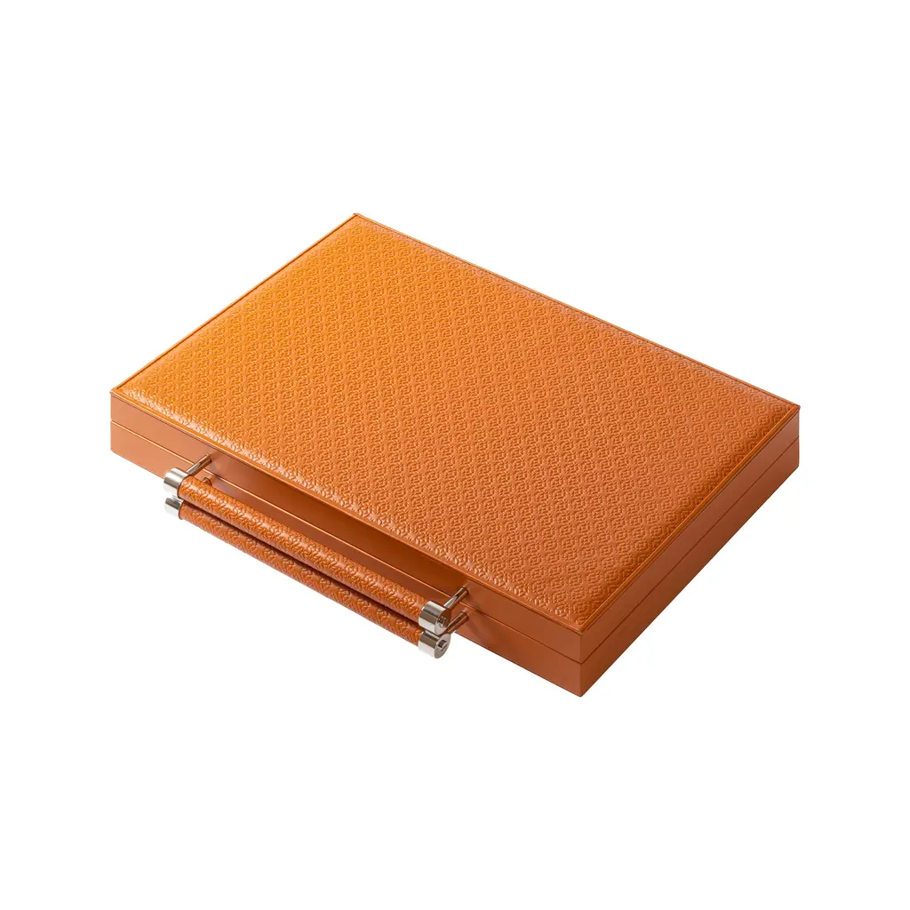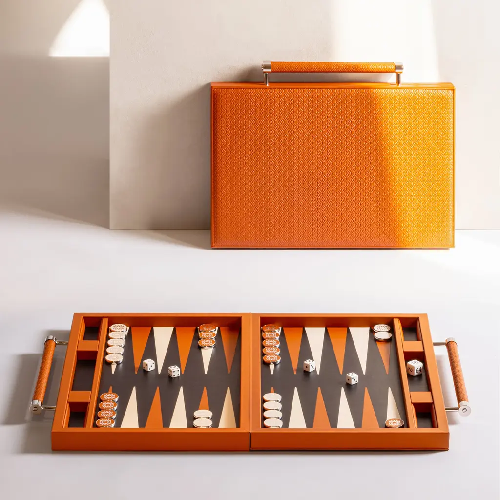 A striking fusion of design and haute couture, the Portable Monogram Backgammon Case is a breathtaking creation from the Giobagnara x Elie Saab collaboration. Expertly handcrafted in Italy, the handsome travel case is wrapped in leather adorned with the iconic ELIE SAAB Monogram pattern. It opens to reveal an inlaid leather playing field and jewel-like palladium checkers with decorated leather inserts. The absolute pinnacle of luxurious gaming on the go, it transforms the art of play into a high-fashion experience, wherever you are. Highlights: