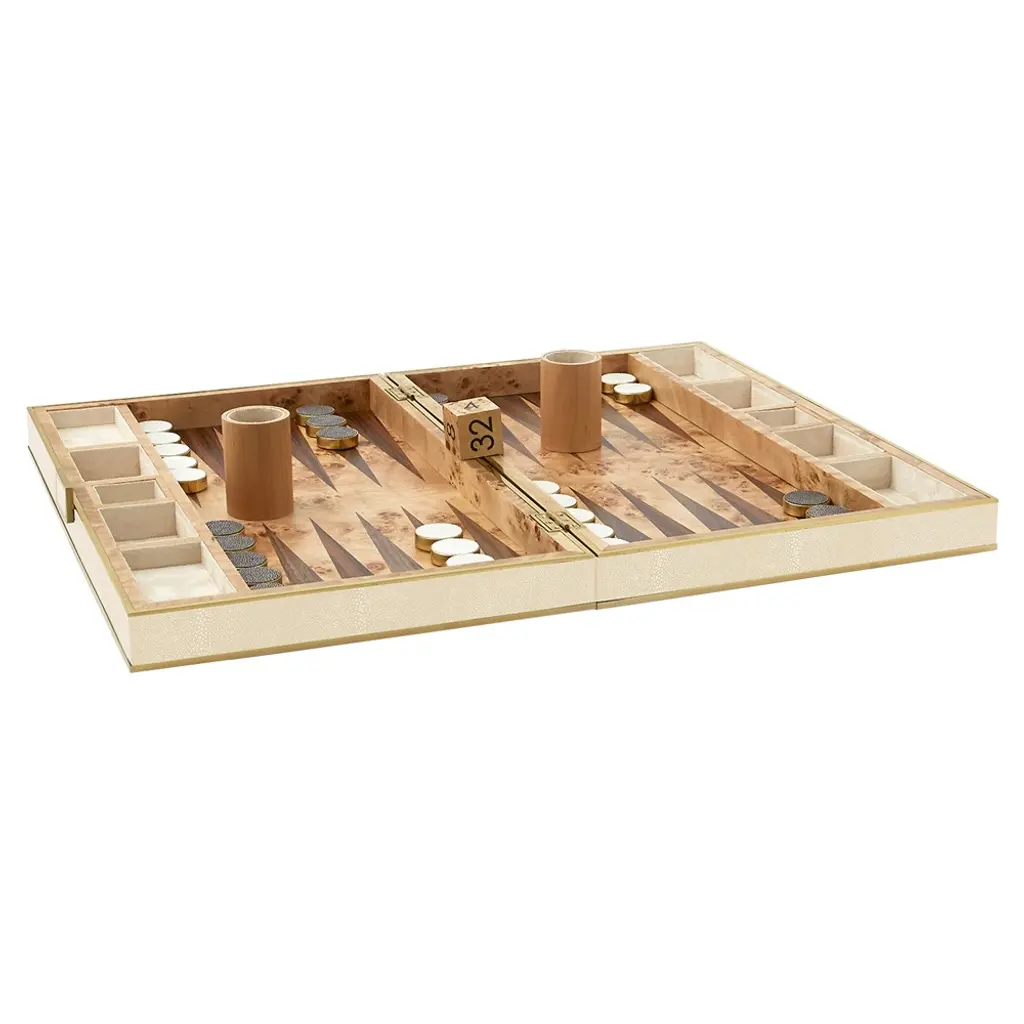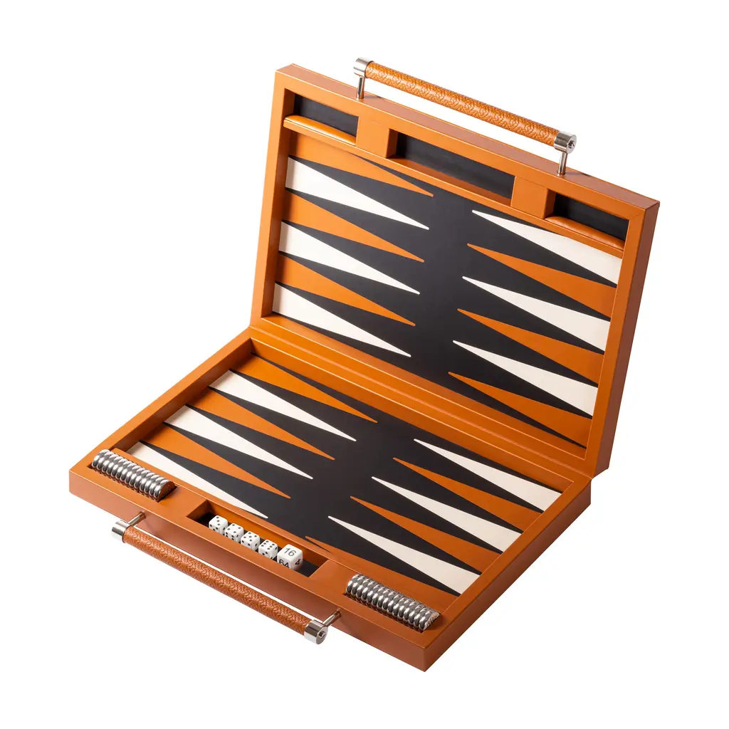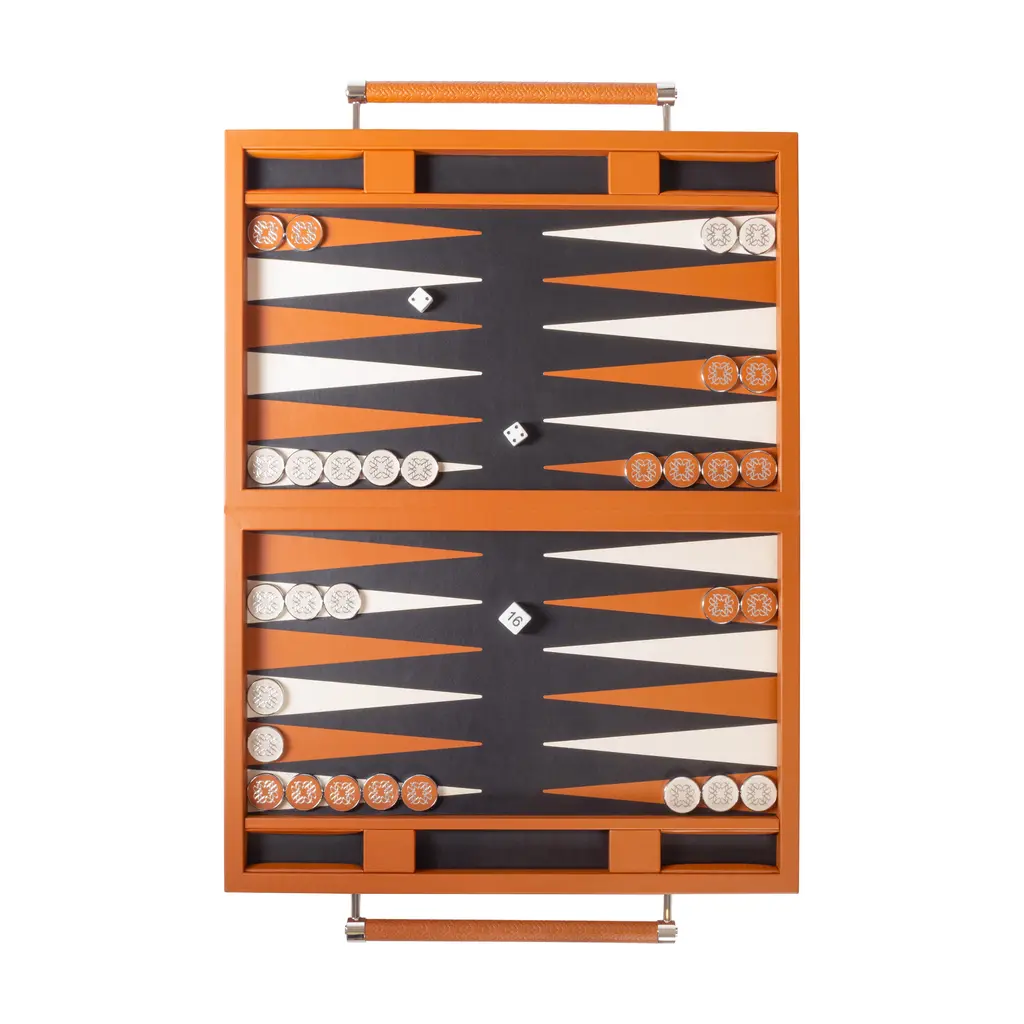 A striking fusion of design and haute couture, the Portable Monogram Backgammon Case is a breathtaking creation from the Giobagnara x Elie Saab collaboration. Expertly handcrafted in Italy, the handsome travel case is wrapped in leather adorned with the iconic ELIE SAAB Monogram pattern. It opens to reveal an inlaid leather playing field and jewel-like palladium checkers with decorated leather inserts. The absolute pinnacle of luxurious gaming on the go, it transforms the art of play into a high-fashion experience, wherever you are. Highlights: