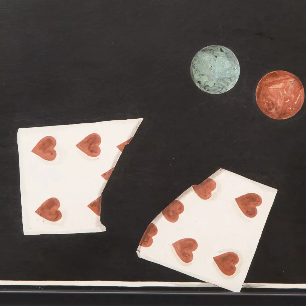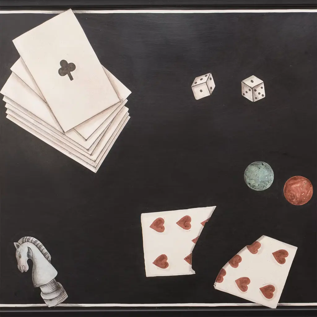 This poker inspired tableau is a unique piece entirely handcrafted by Tuscan artisan Bianco Bianchi. The black slate base is decorated with a playful, traditionally executed scagliola inlay inspired by 18th century originals.