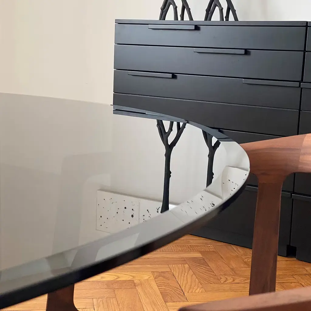 This version with the glass top is made to adapt to a variety of different environments. Par of the Giorgia collection. Please ask the concierge for customizations options.