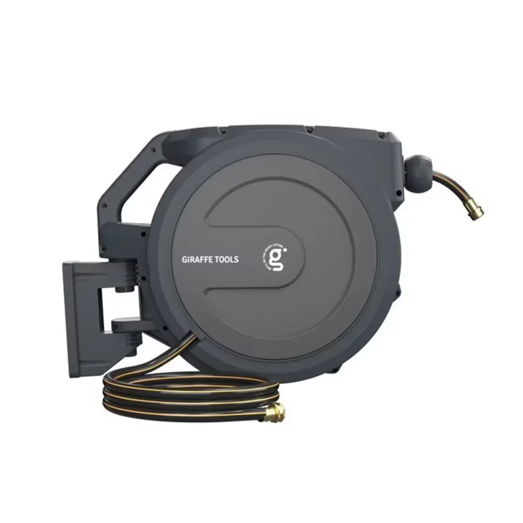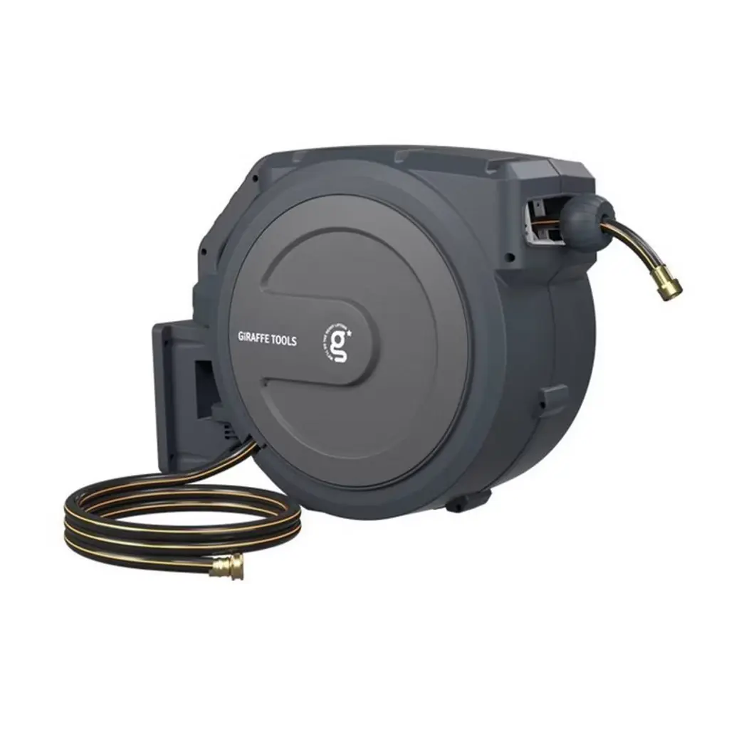 Giraffe Tools 78' Garden Retractable Mounted Hose Hangers Dark Gray
